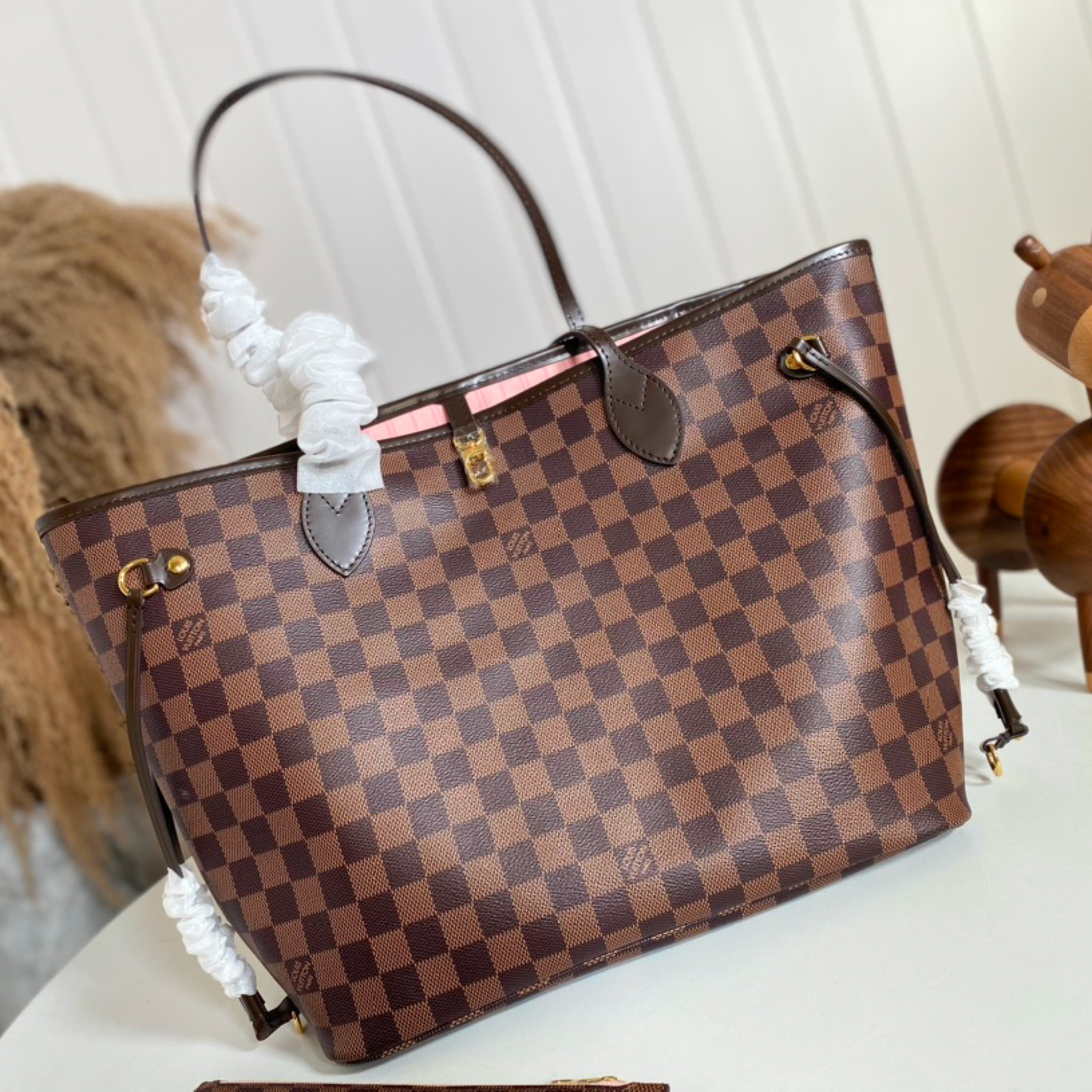 Designer Monogram Damier Ebene Canvas Neverfull MM Rose Ballerine - Bag