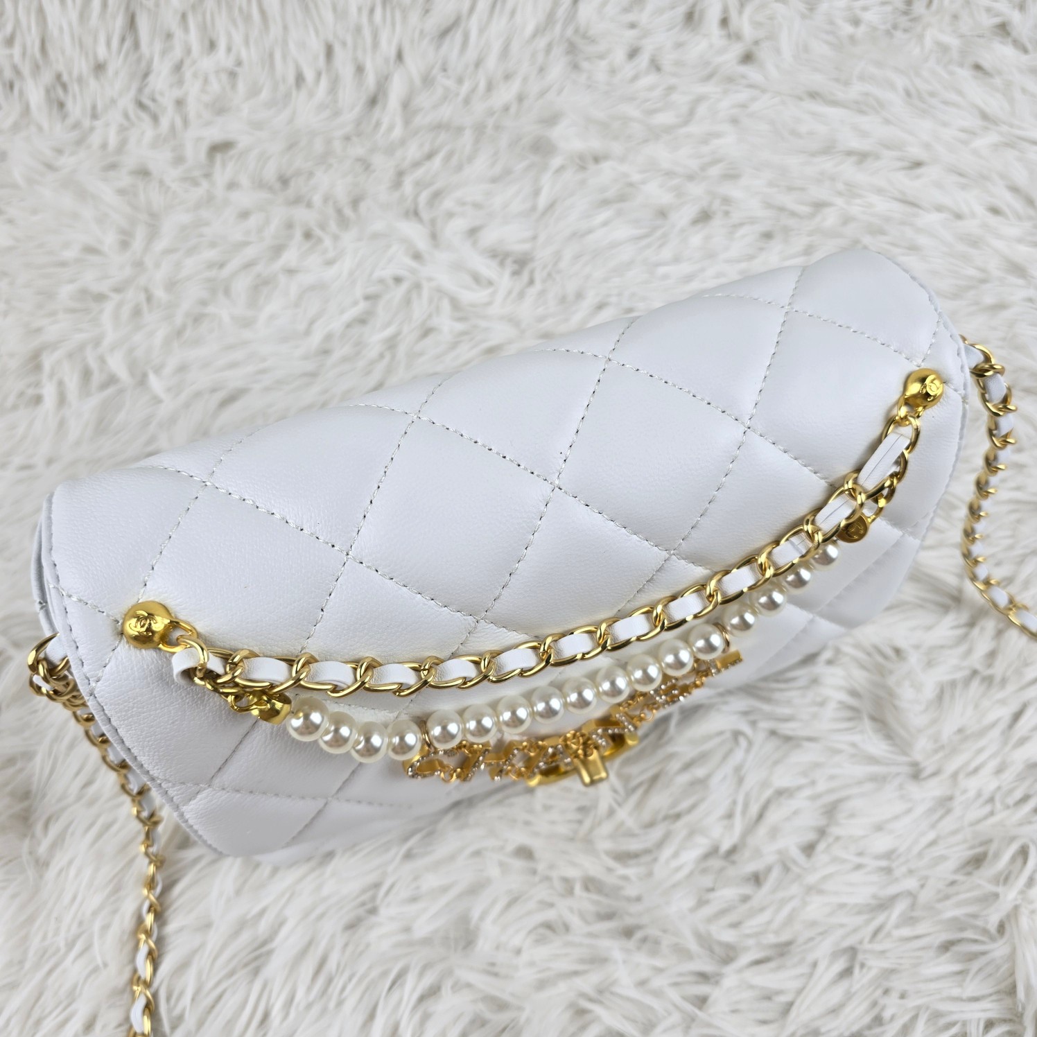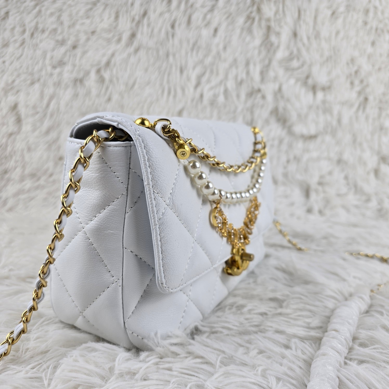 CC Inspired 24A Pearl Small Flap Bag-White - Bag