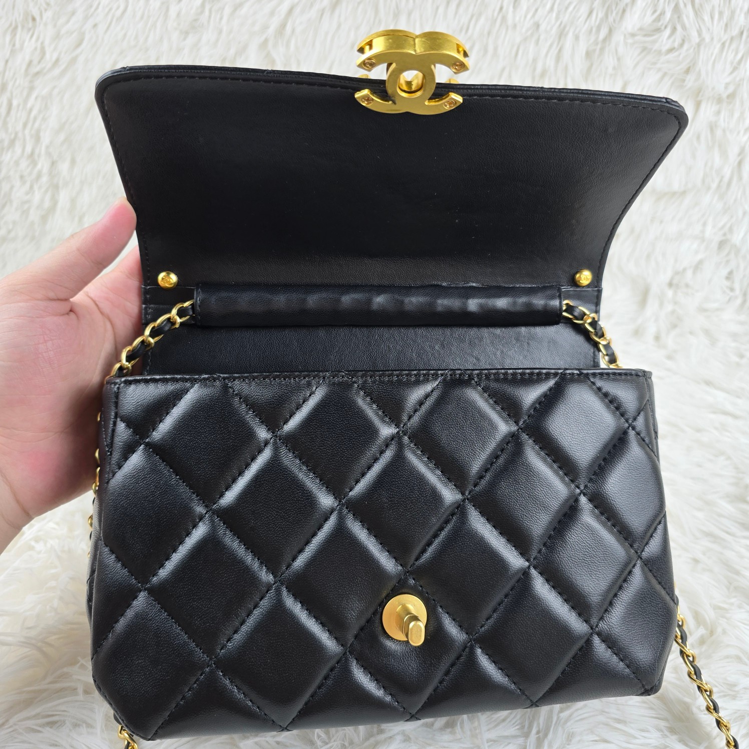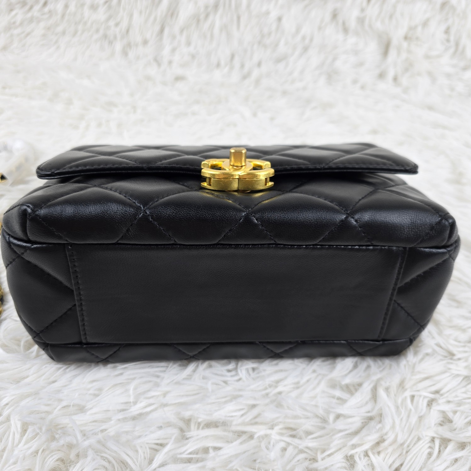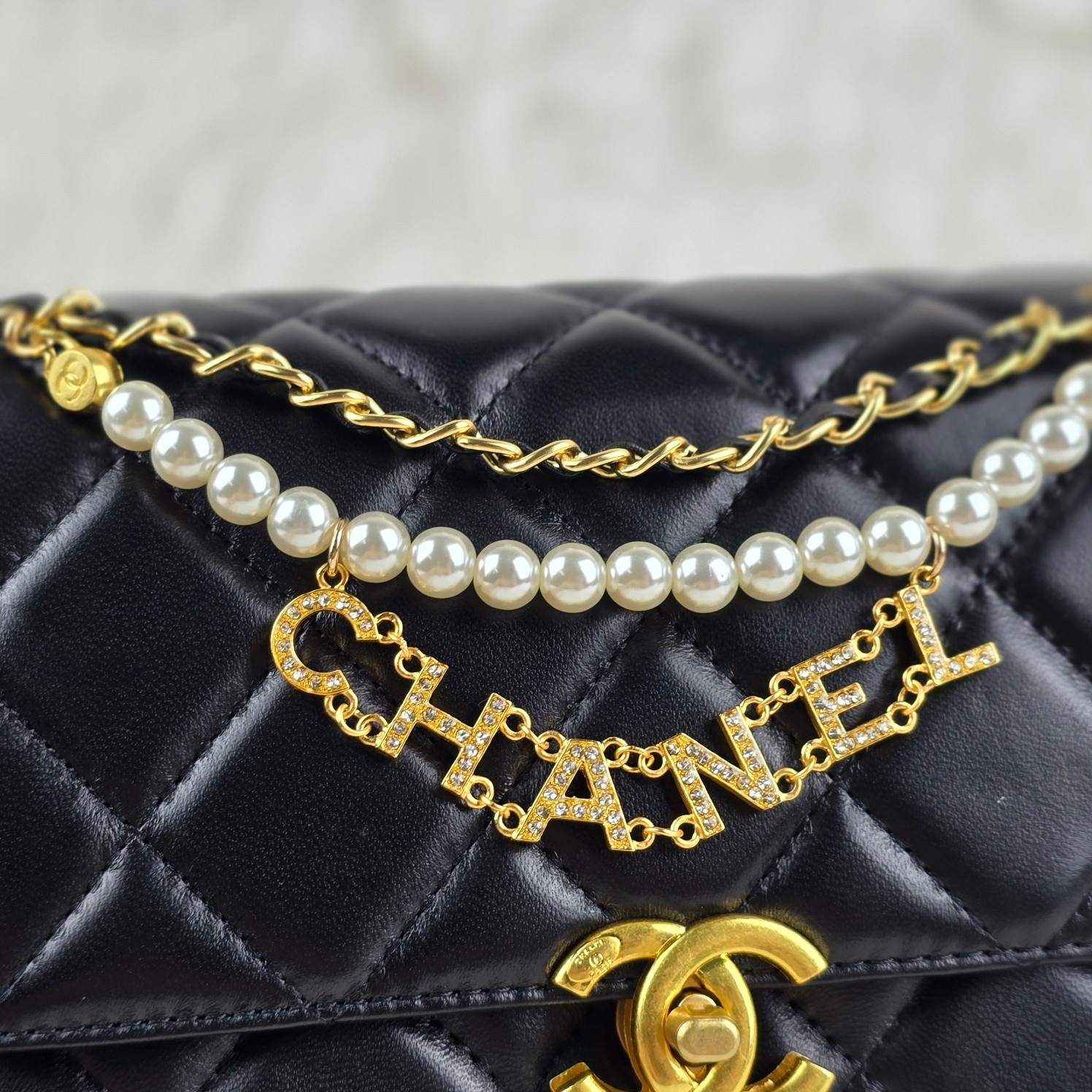 CC Inspired 24A Pearl Small Flap Bag-Black - Bag