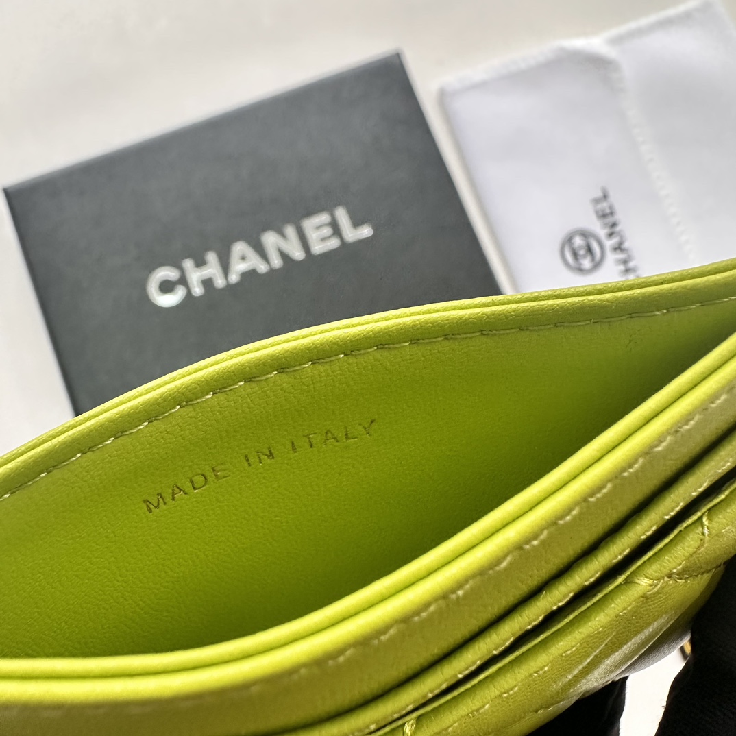 CC Inspired CLASSIC CARD HOLDER Grained Shiny Calfskin & Gold-Tone Metal Green -Wallet