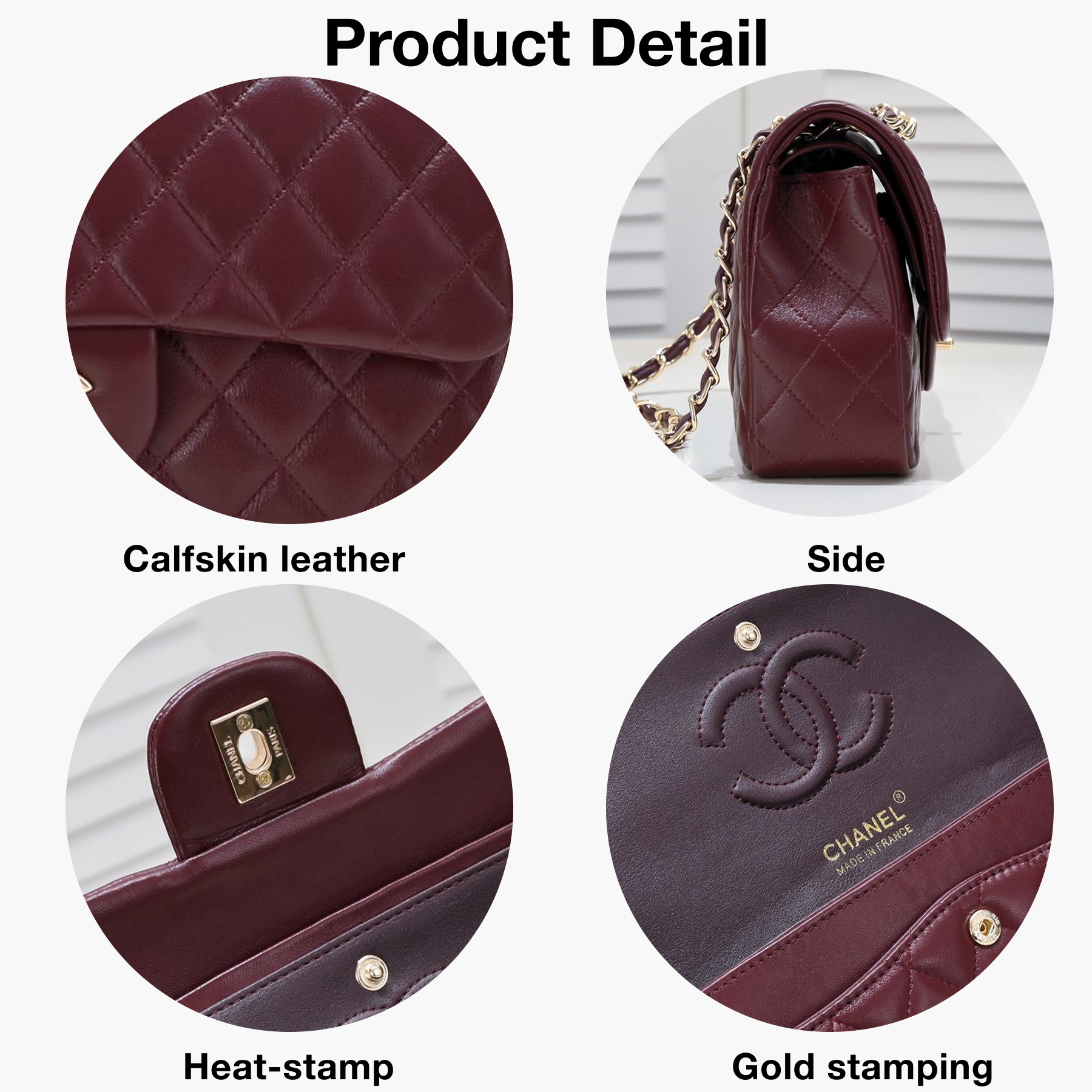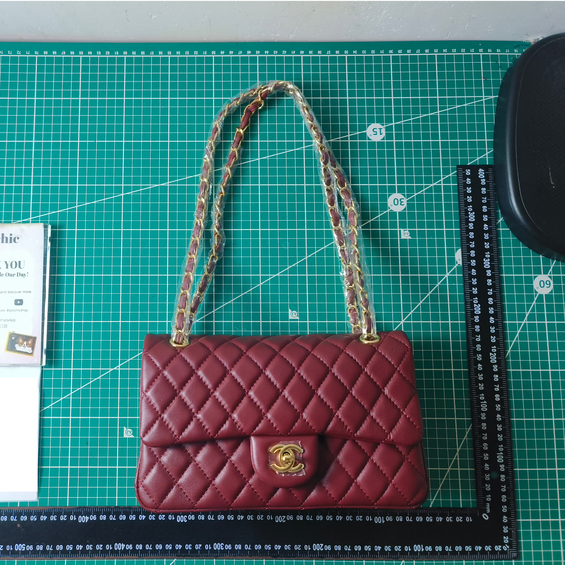 CC Inspired Classic Double Flap Bag Dark Red Golden Hardware - Bag