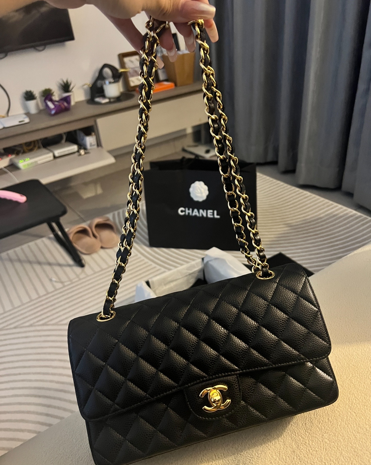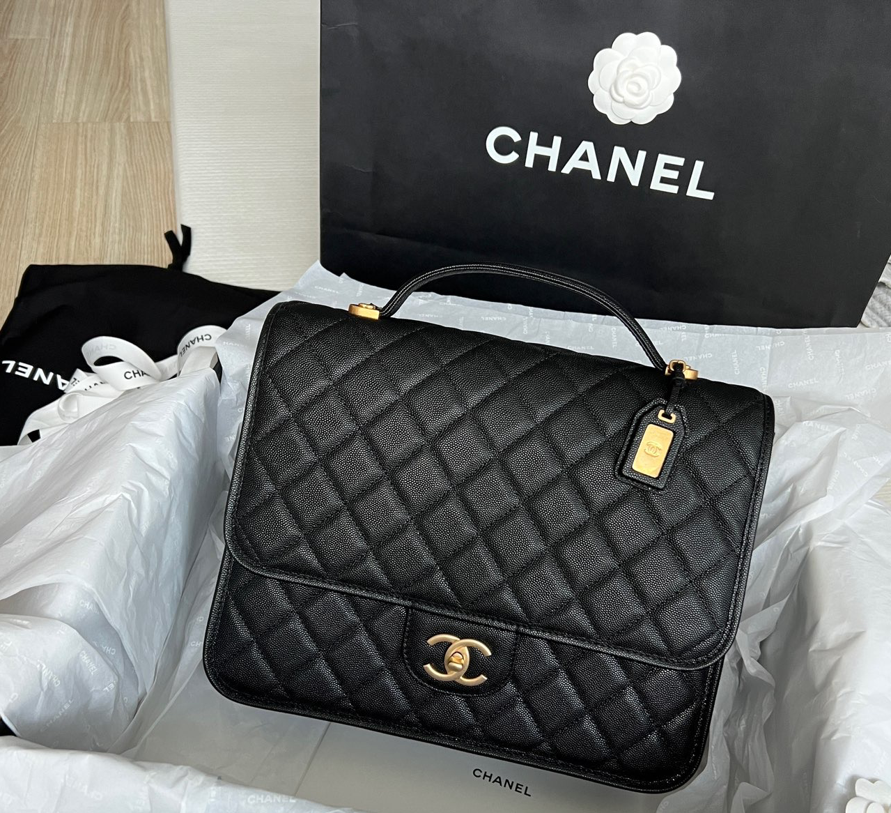 CC Inspired Classic Flag Bag Jumbo Classic Double Flap Bag Black Caviar Gold Hardware - Bag