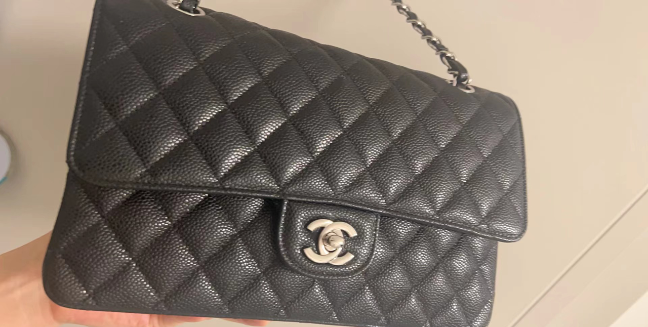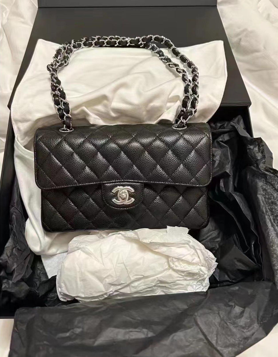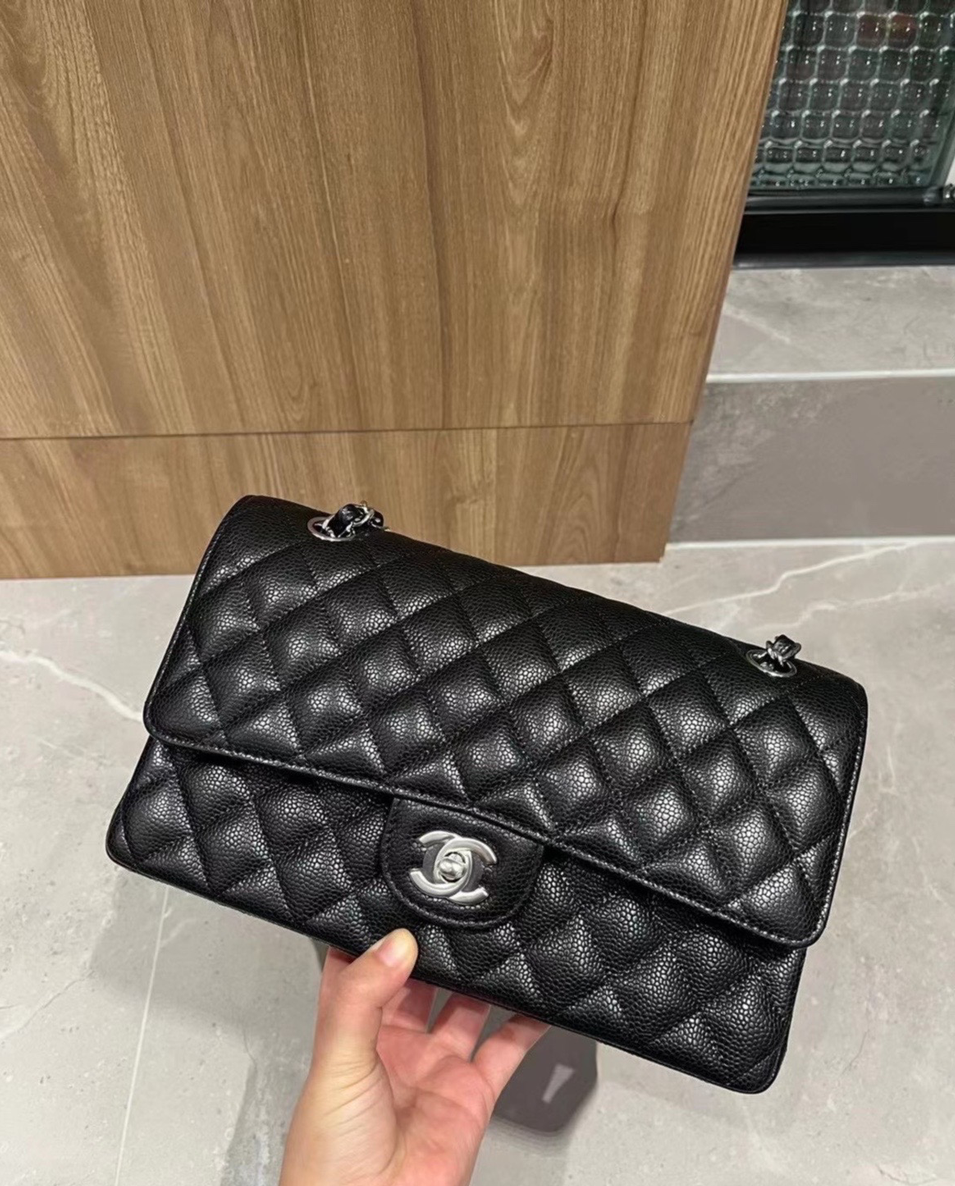 CC Inspired Classic Flag Bag Medium Classic Double Flap Bag SO Black Crumpled Calfskin Sier Hardware - Bag