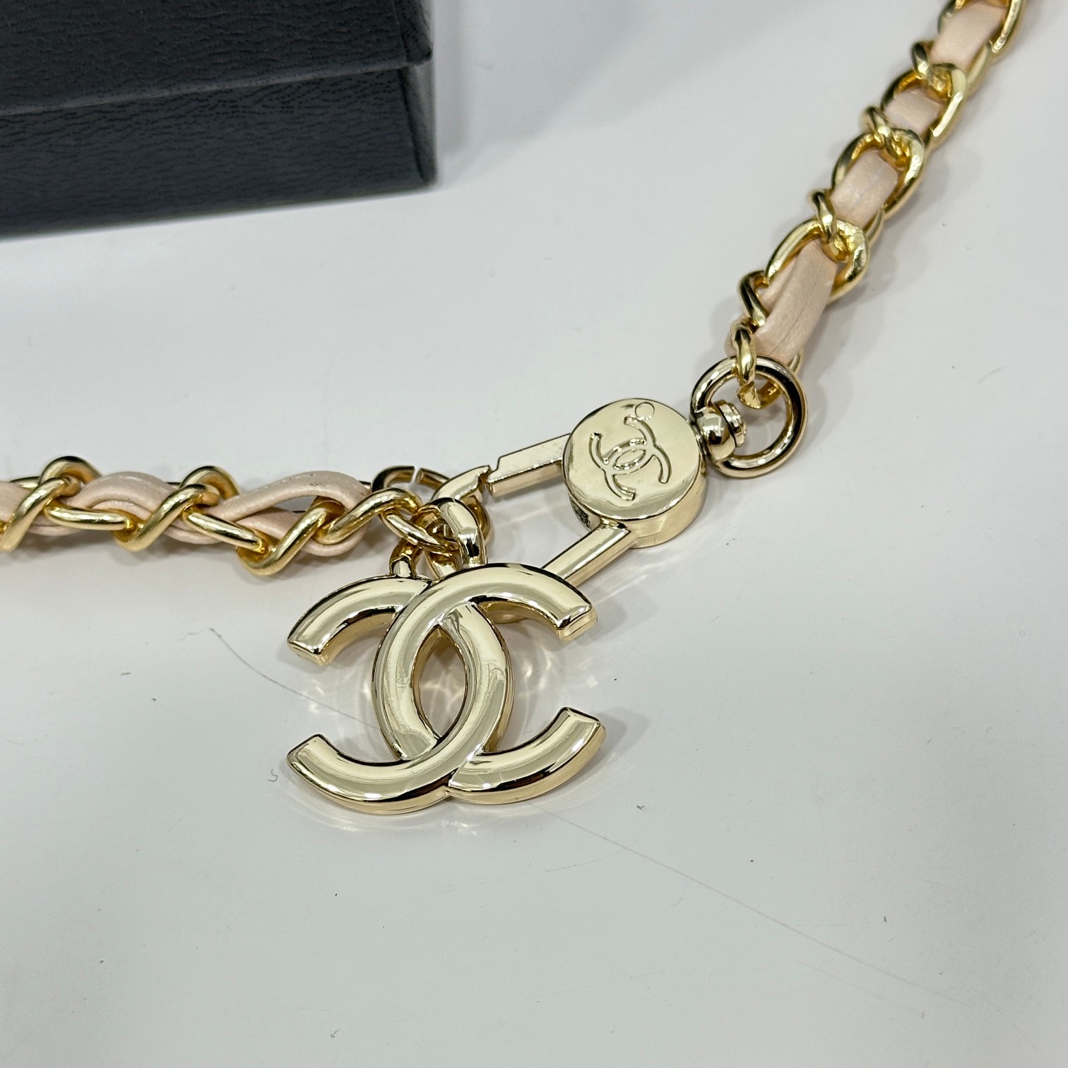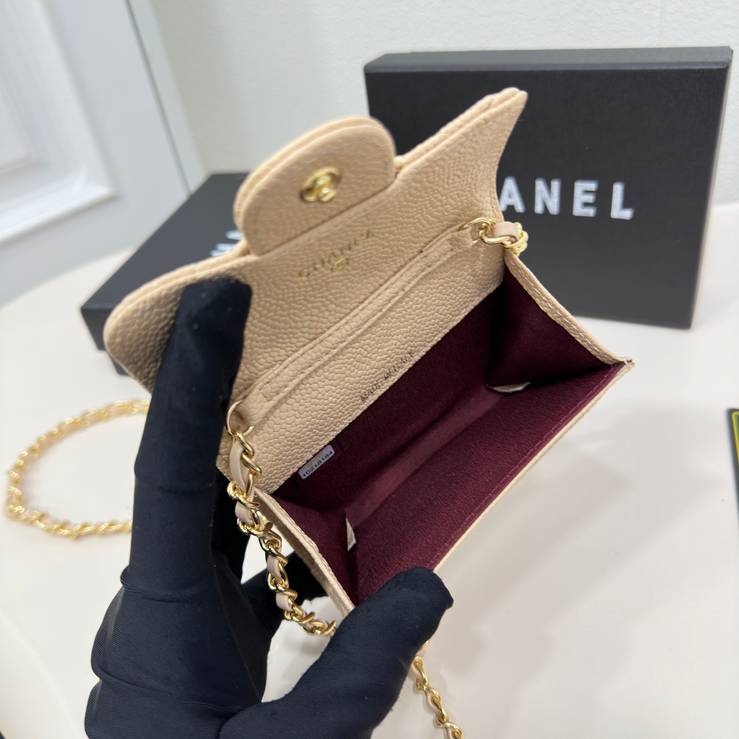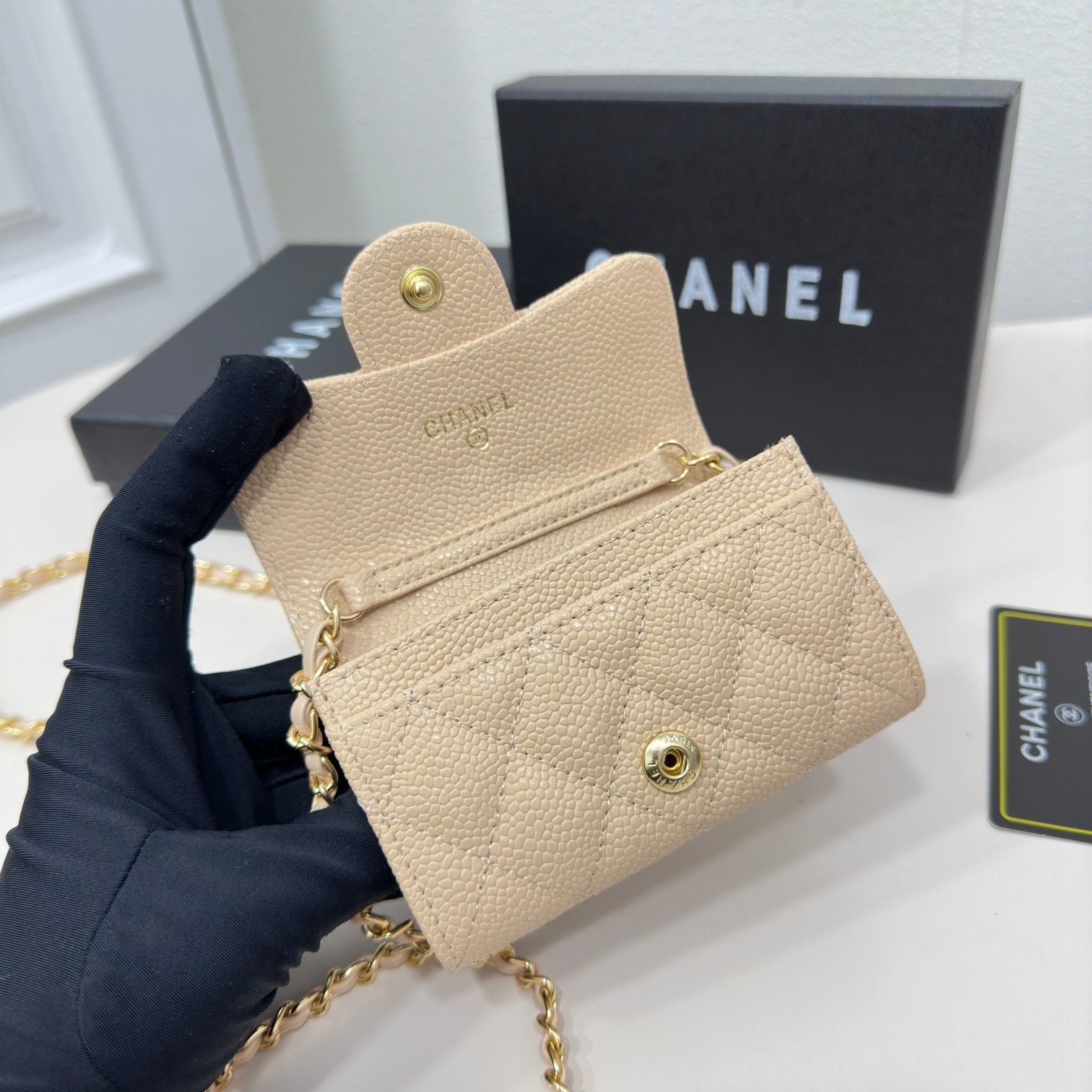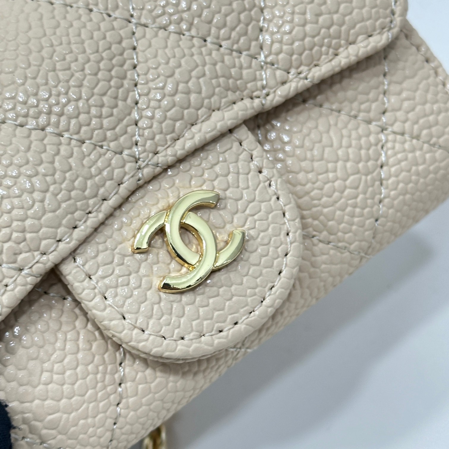 CC Inspired Beige Metallic Calfskin Quilted Flap Chain Waist Bag