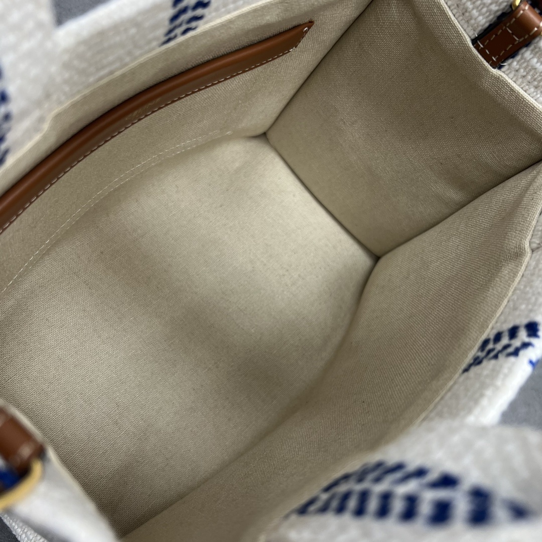CL Small Cabas Thais Bag In Striped Fabric and Calfskin White Blue Brown Bag
