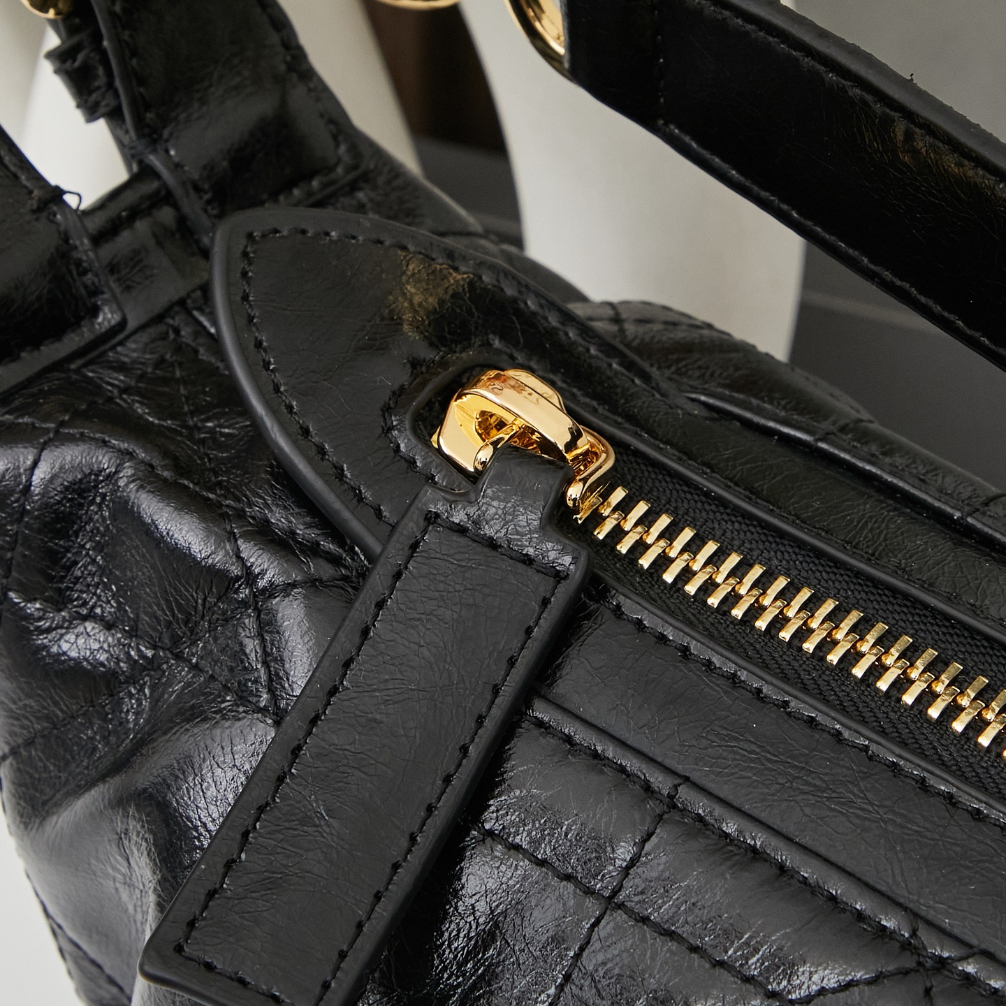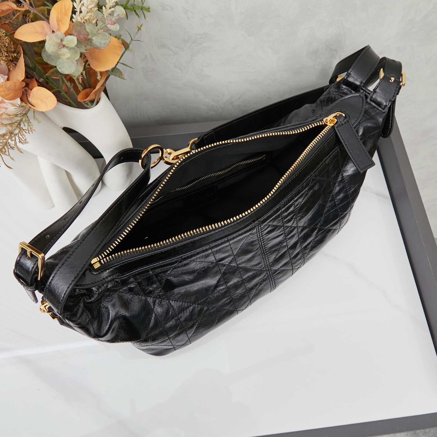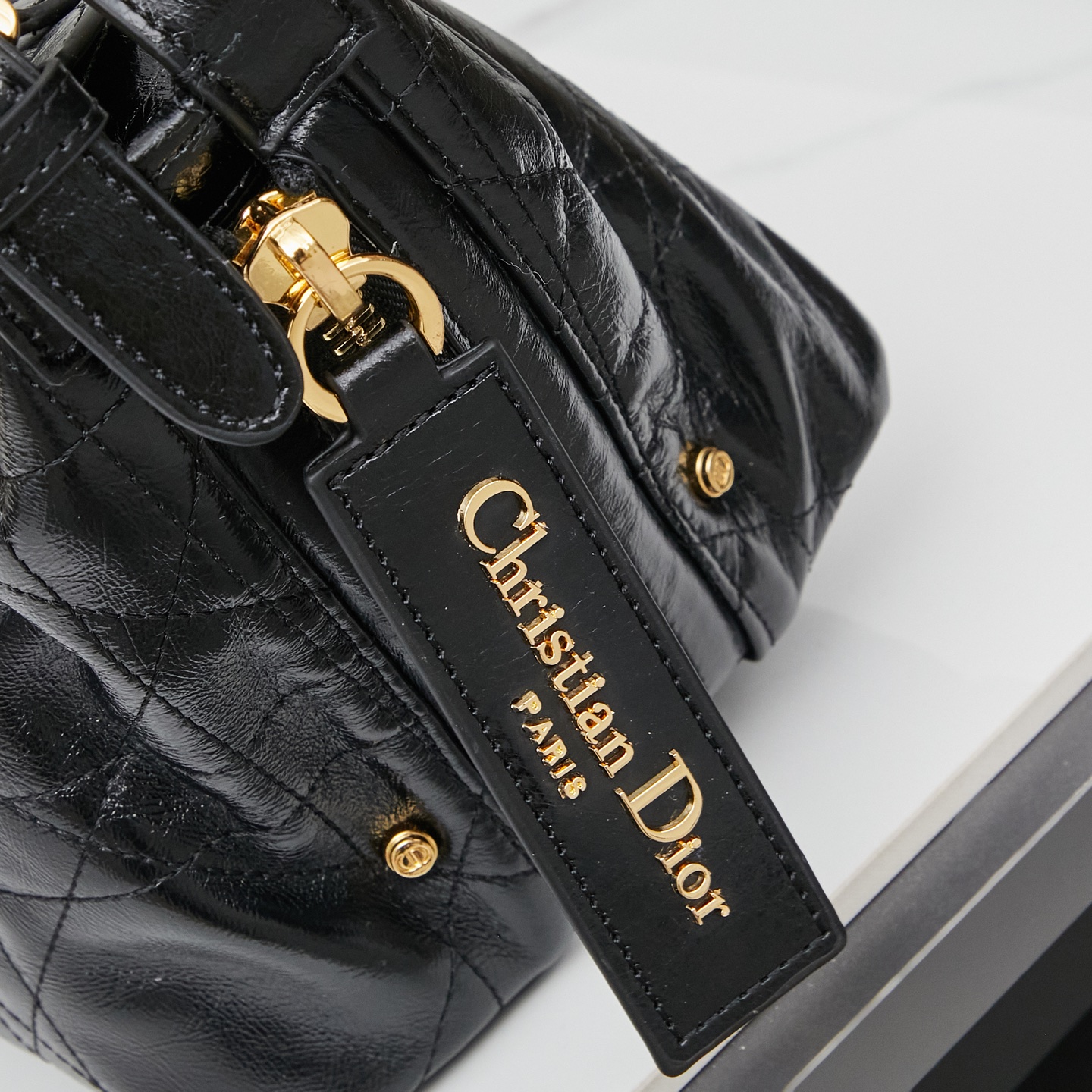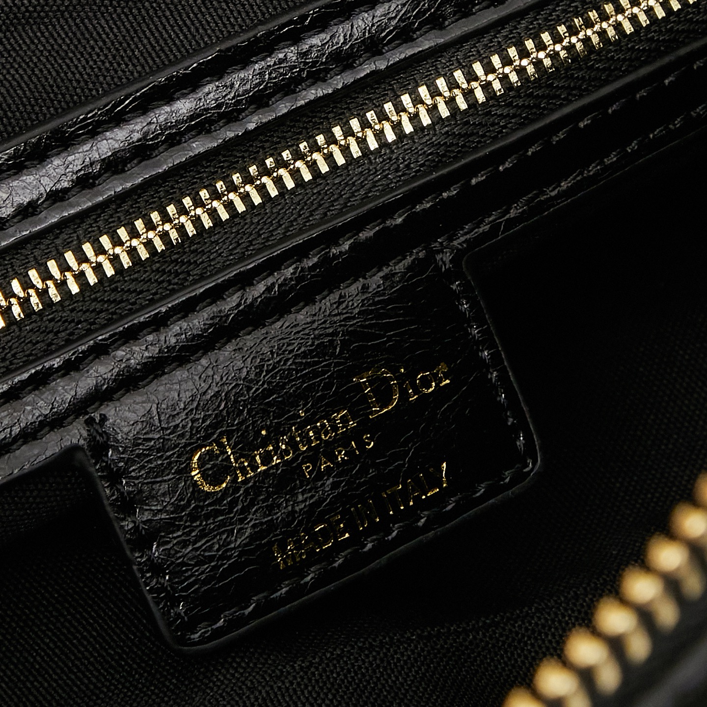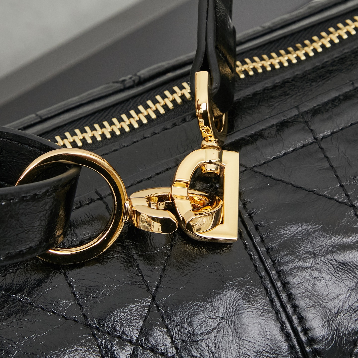 D Inspired D-Journey Bag in Crinkled Calfskin-Black Flat Macrocannage