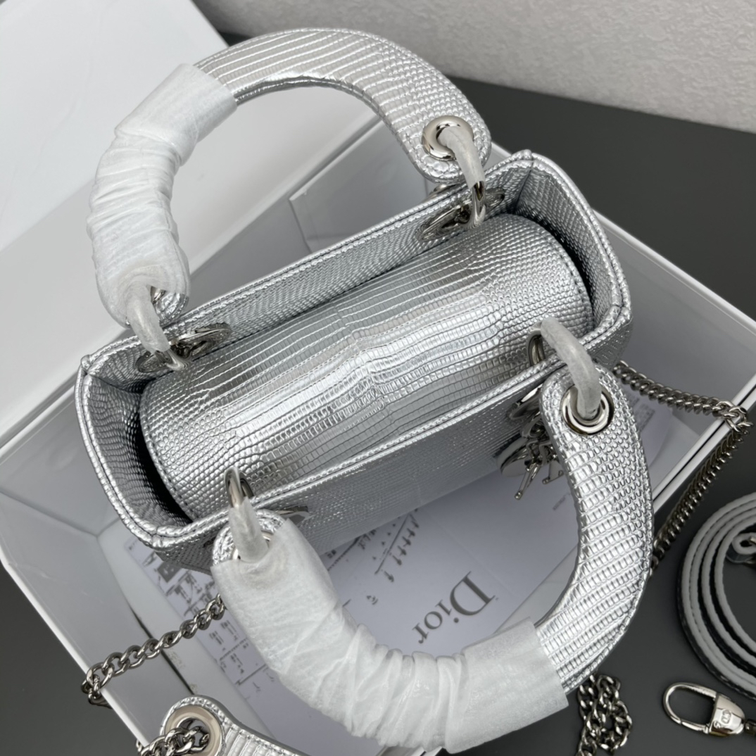 D Inspired lady bag 17cm lizard bag-Sier - Bag