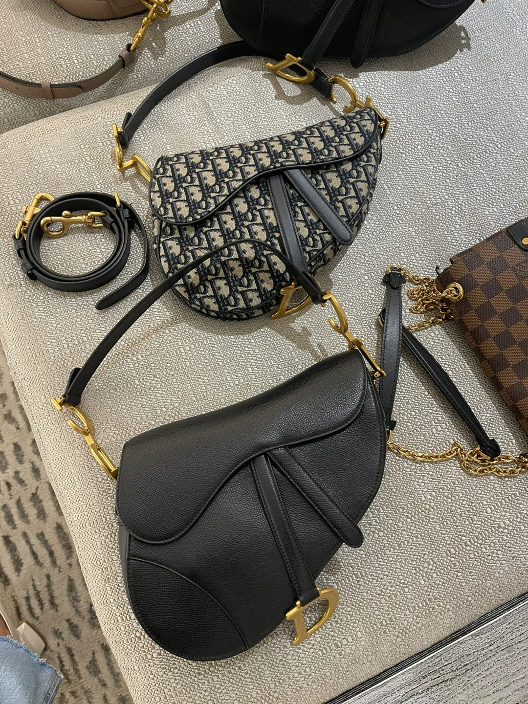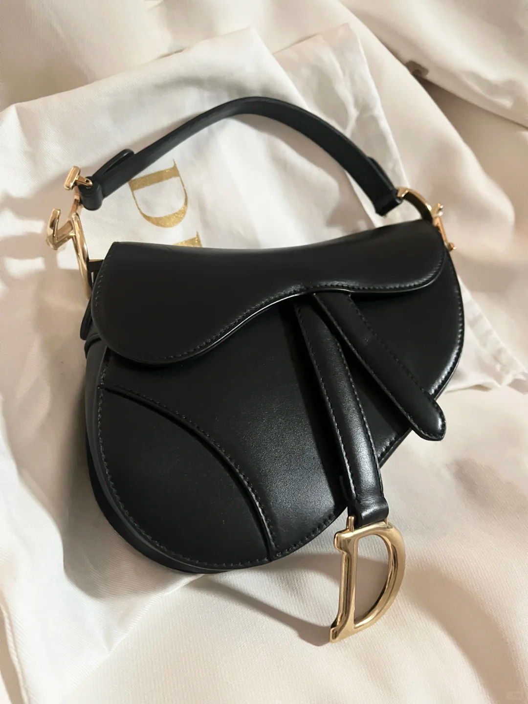 D Inspired Womens Bags Shoulder Bags SADDLE BAG Black Grained Calfskin - Bag