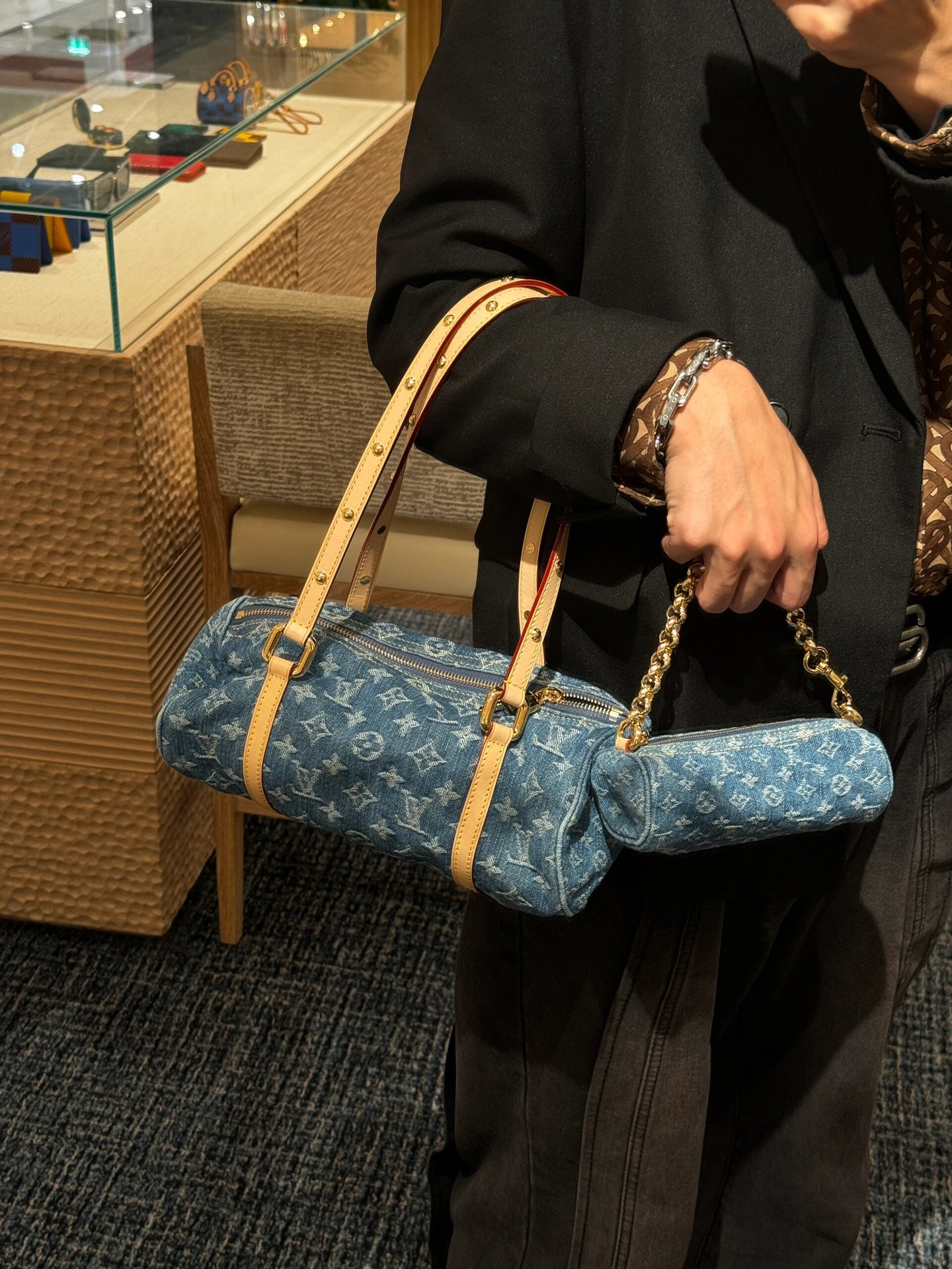 Designer Monogram Papillon Casual Style Unisex Denim Shoulder Bag