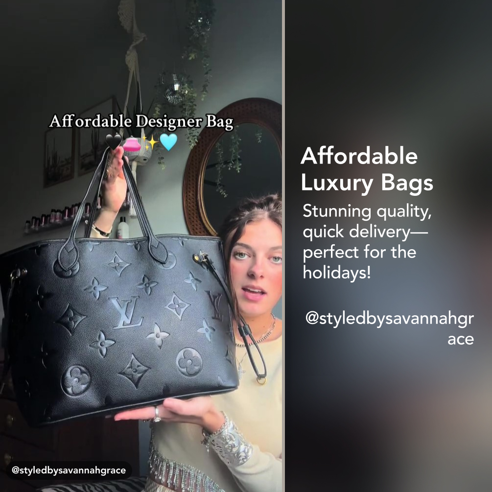 Designer Monogram Neverfull Black Embossed Medium Handbag