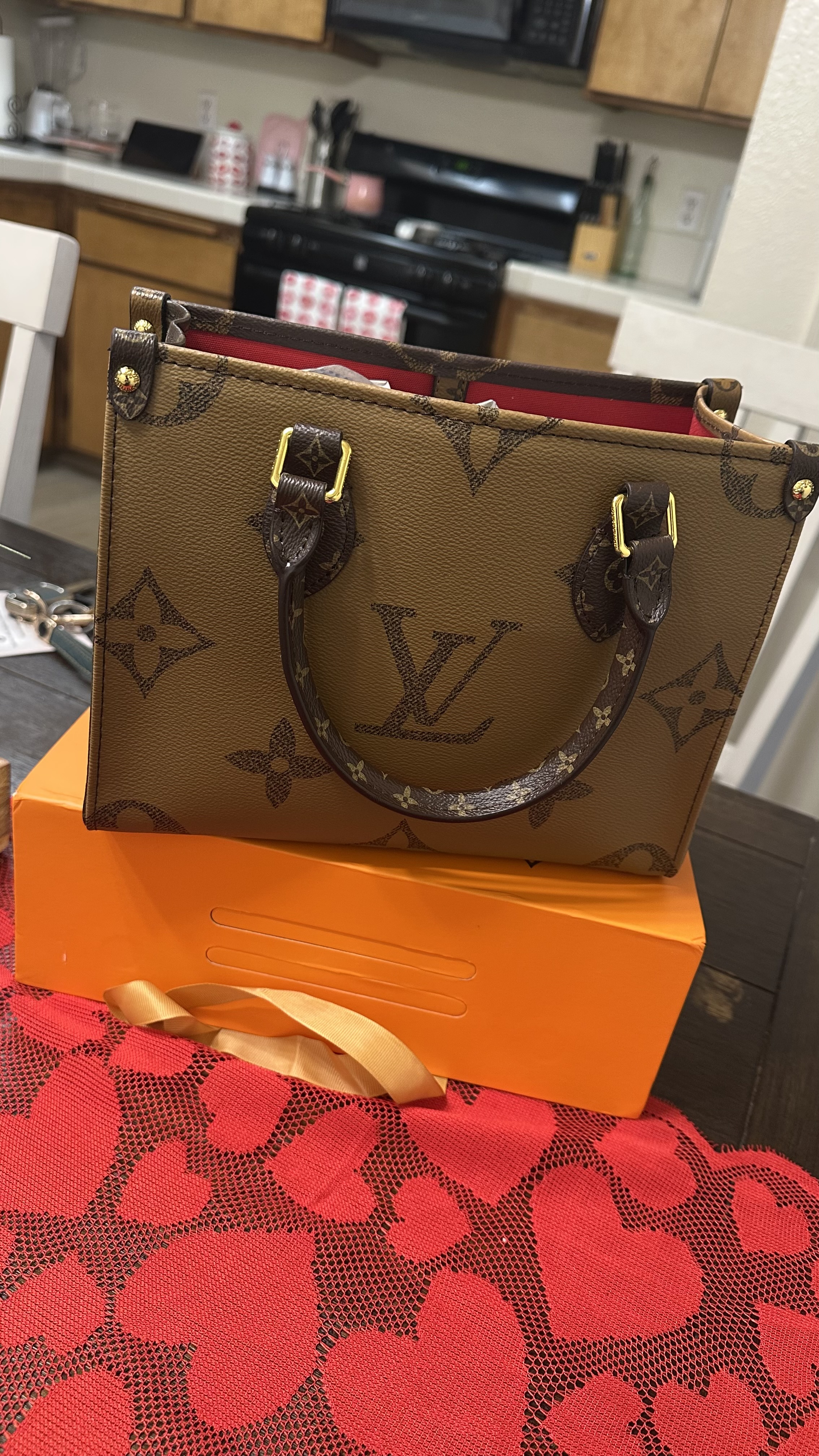 Shocked at the fantastic quality of this bag. Feels like expensive material. Looks beautiful and includes all the engravings and details inside. Came with adust bag, long and short strap. Absolutely obsessed with this bag and will be ordering in more colours. Delivery only took 2 weeks so came surprisingly fast! Definitely recommend!