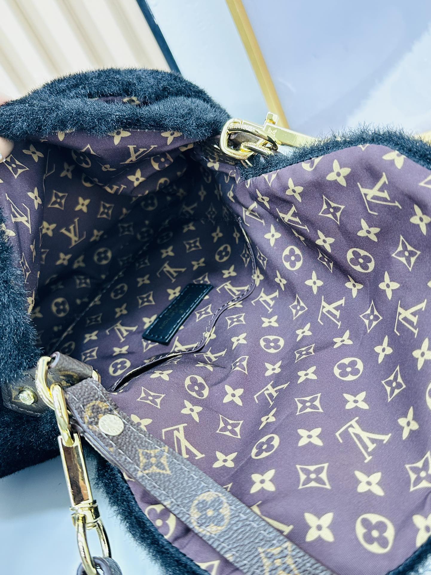 Crafted from plush shearling, this Sunset bag lives up to the name of the Ski Cozygram collection it belongs to. The capacious design is perfectly sized for apres-ski moments, defined by its gleaming gold-toned hardware and signature Monogram details. Use it to store daytime and evening essentials, and to instantly elevate any winter outfit.