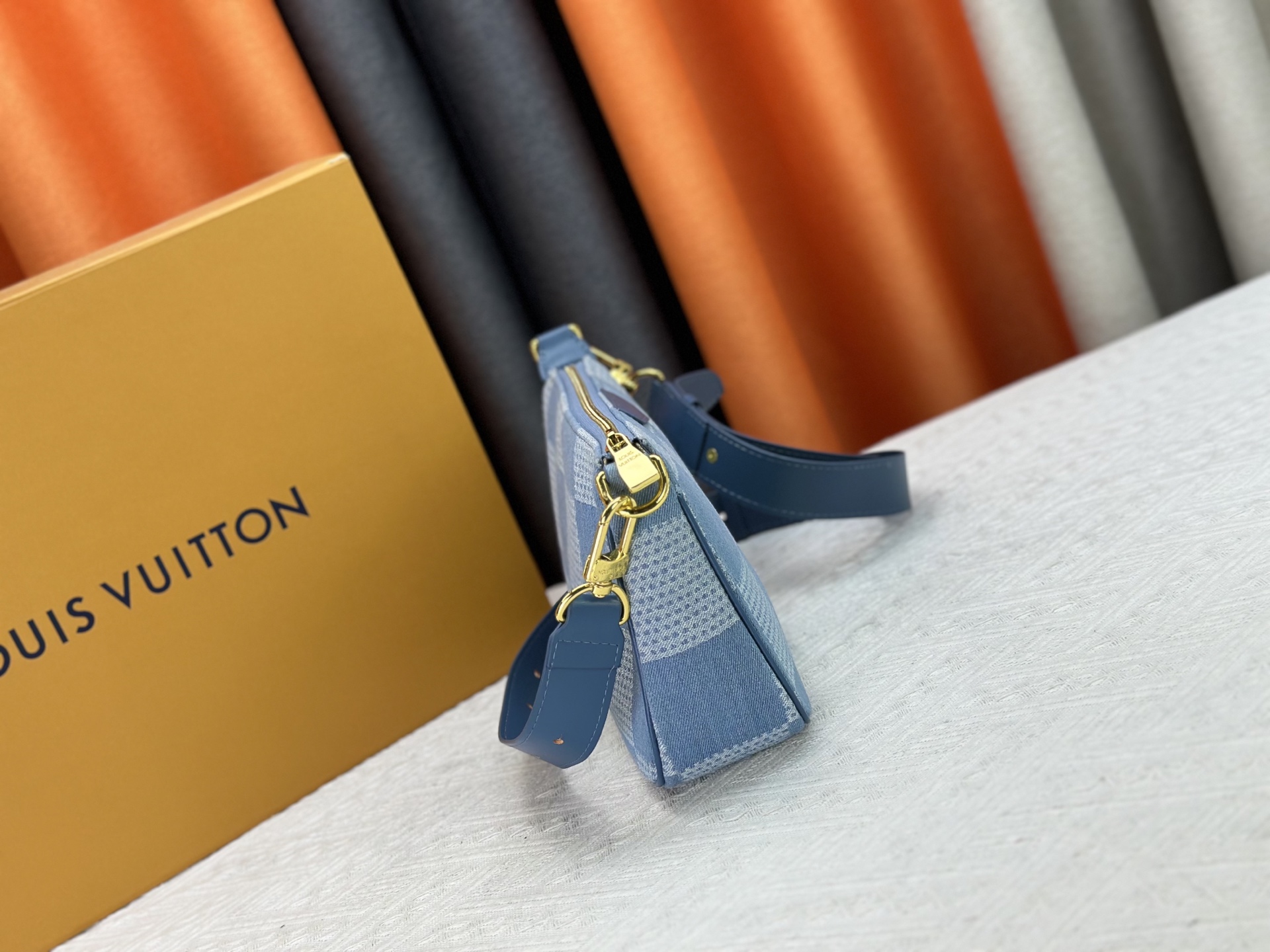 Designer Pochette Accessories XL Damier Denim 3D cotton canvas - Denim Blue