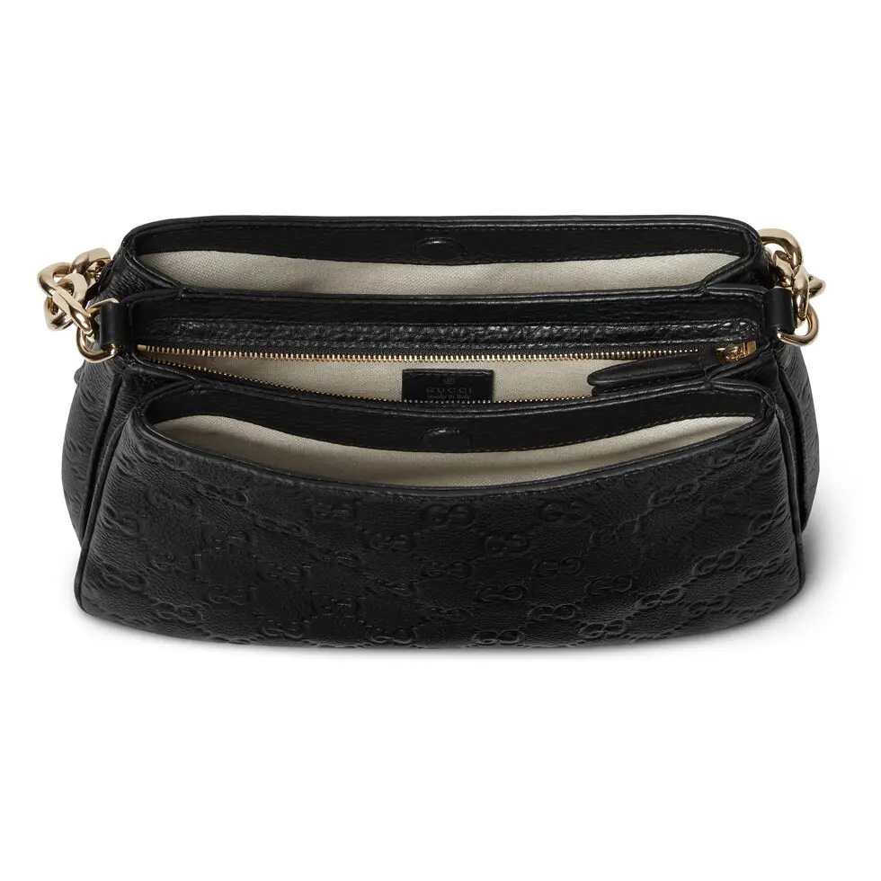DetailThe new GG Emblem collection reinterprets the House’s history of elegance and craftsmanship. This mini shoulder bag has three compartments, a light gold-toned chain, and comes with an additional leather shoulder strap for crossbody wear.
