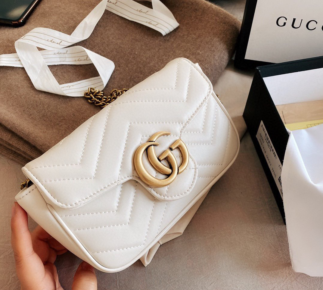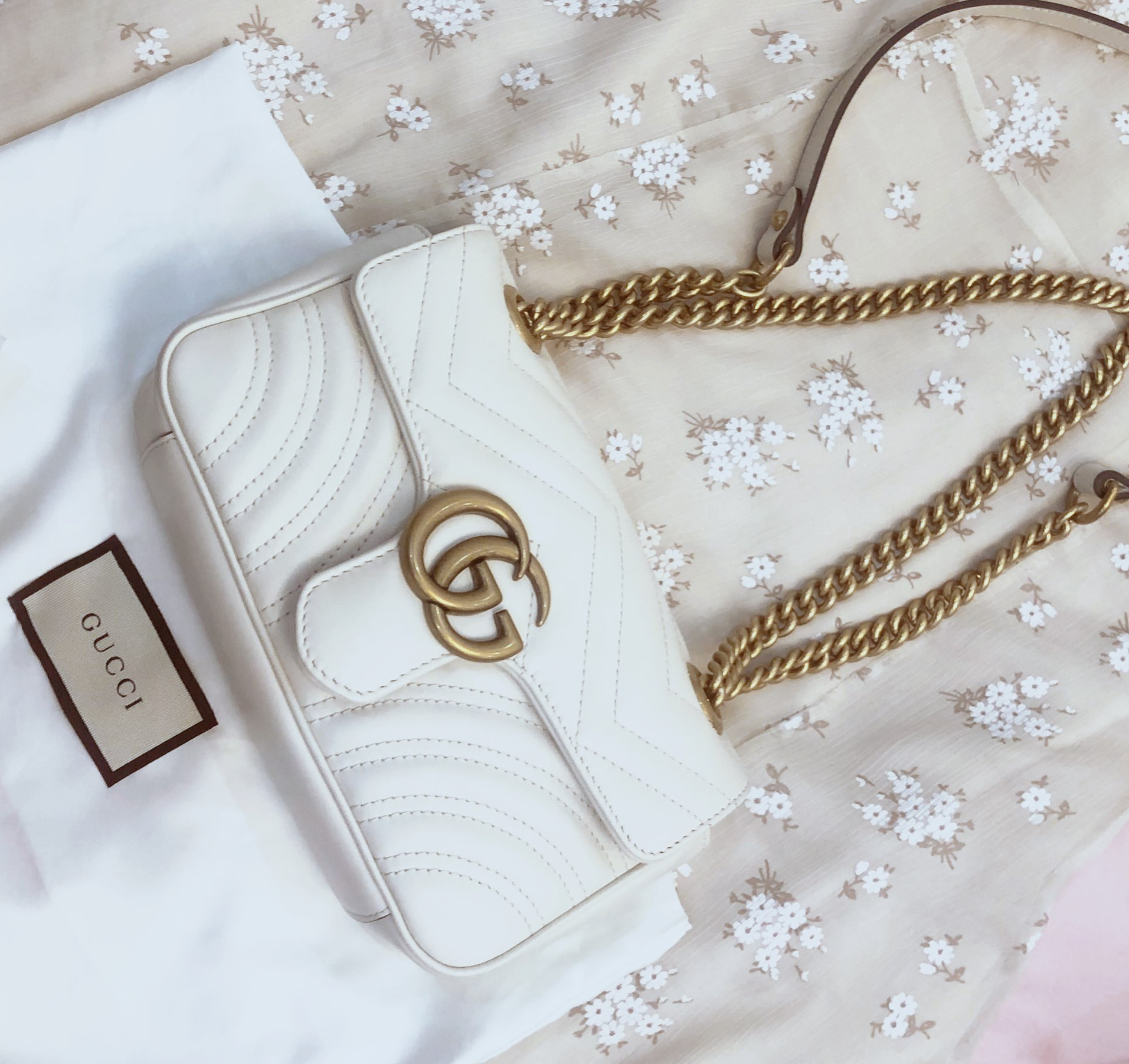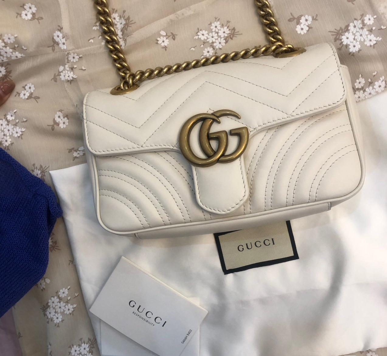 Double-G GG Marmont Small Shoulder Bag in white leather - Bag