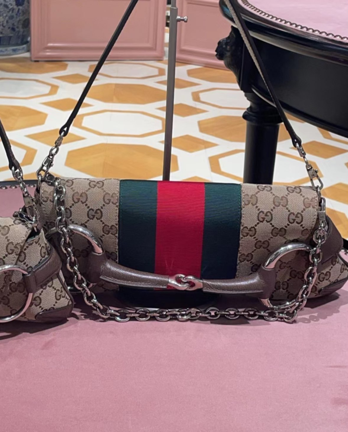 Double-G Horsebit Chain Small Shoulder Bag Beige And Ebony Original GG Canvas - Bag