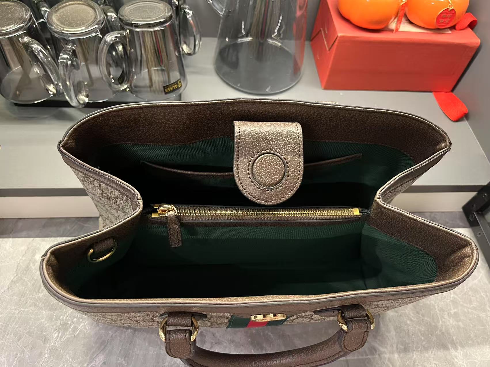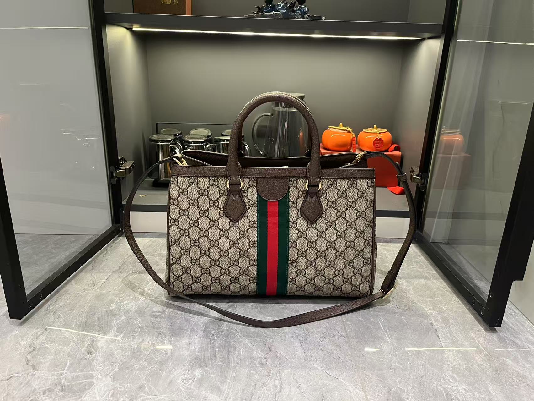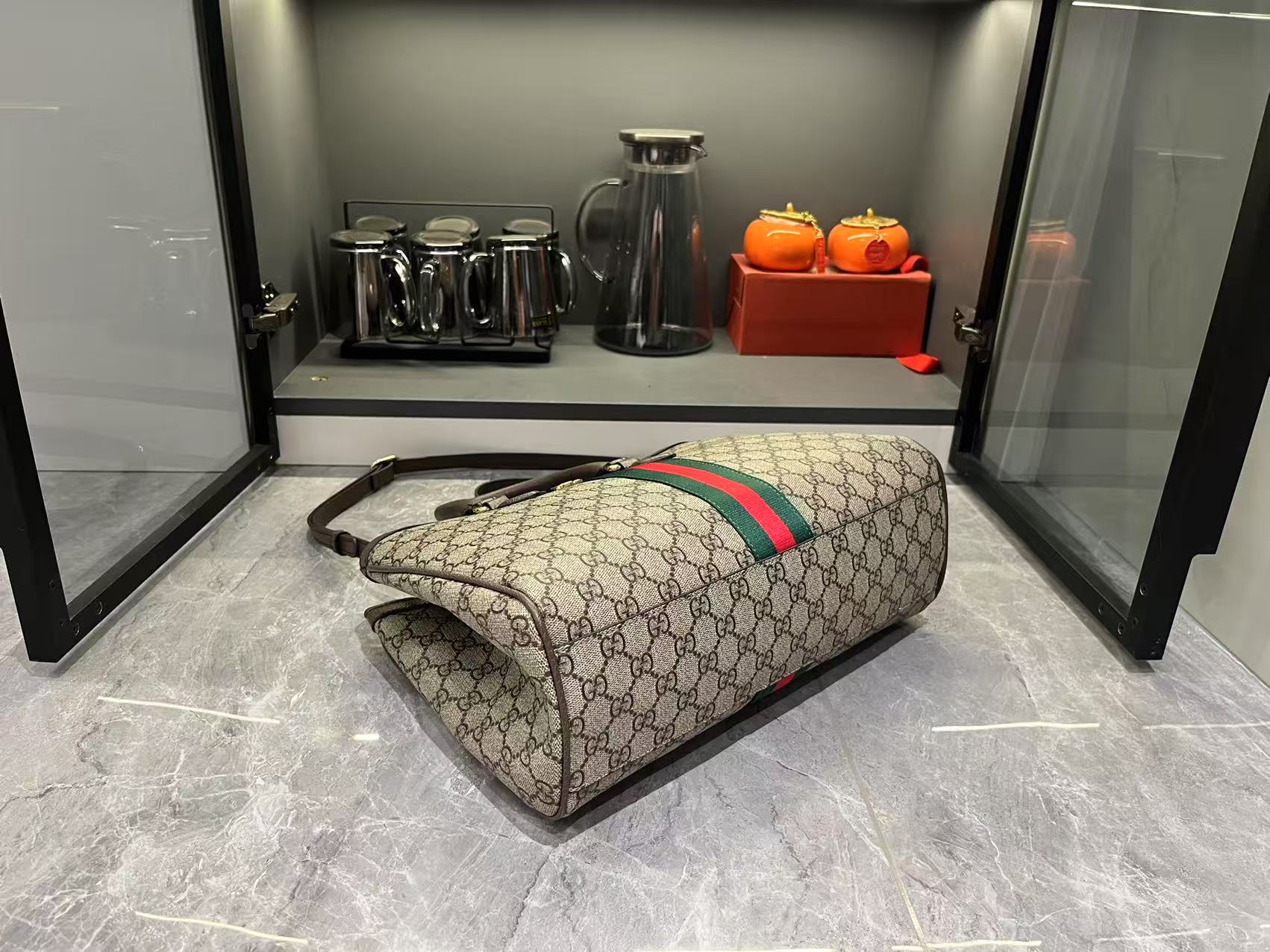 Double-G Ophidia Tote Bag Medium Size GG Monogram coated fabric - Beige and dark brown