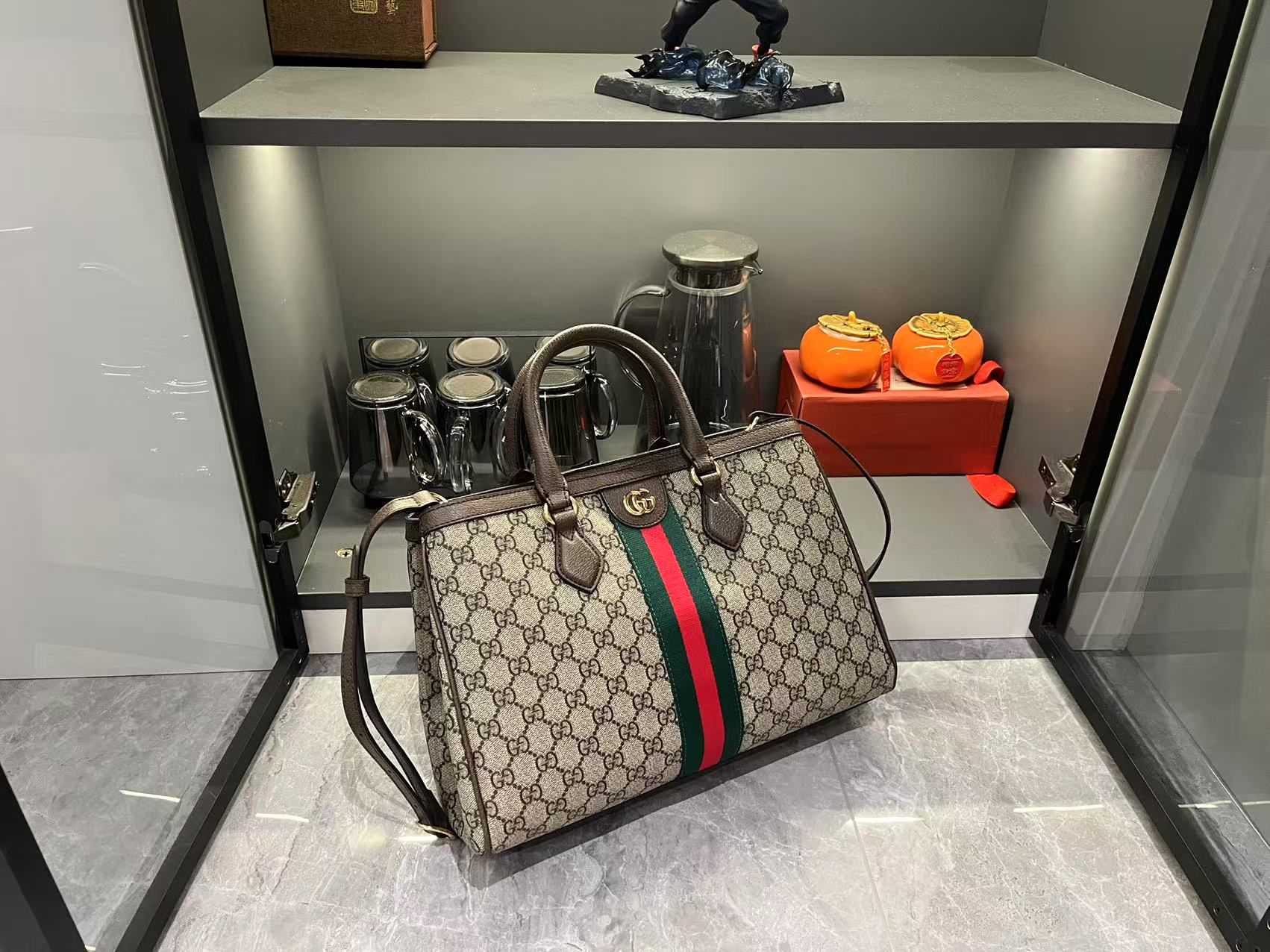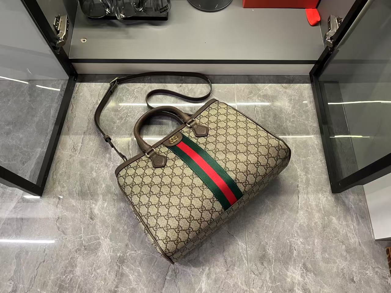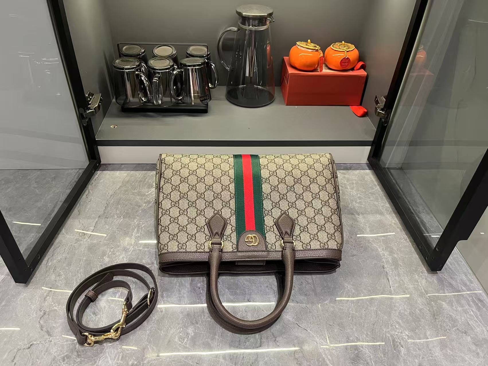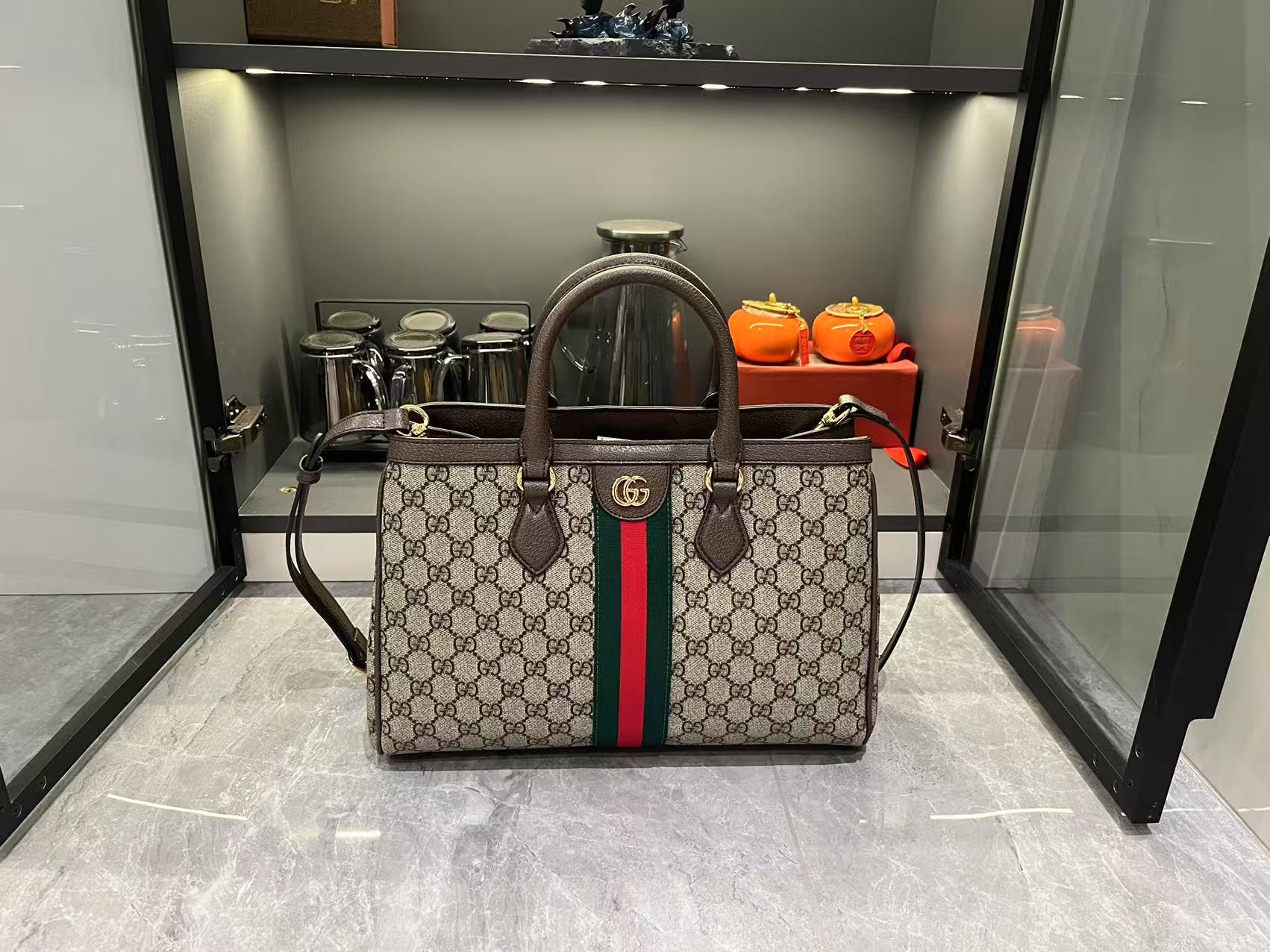 Double-G Ophidia Tote Bag Medium Size GG Monogram coated fabric - Beige and dark brown