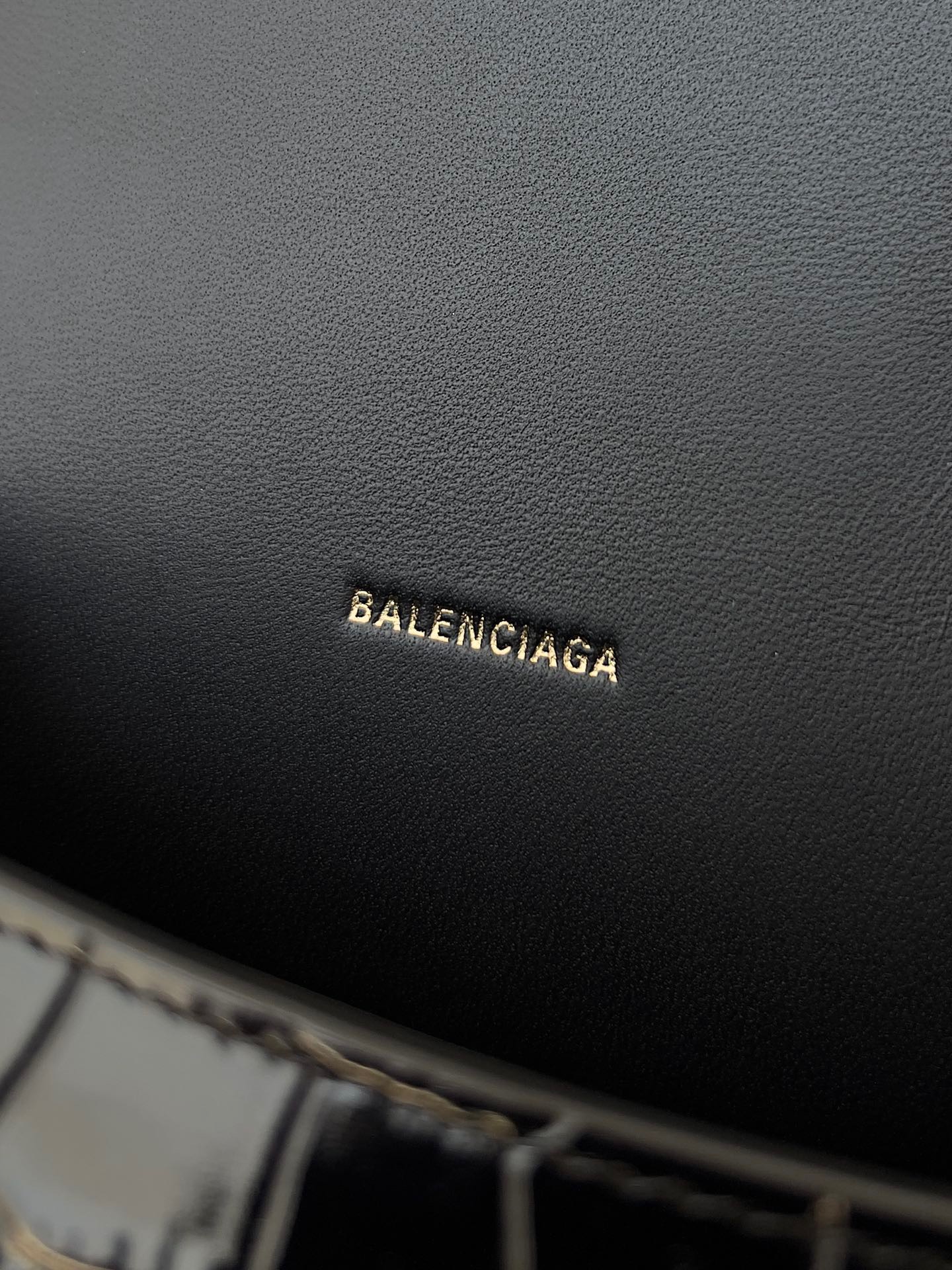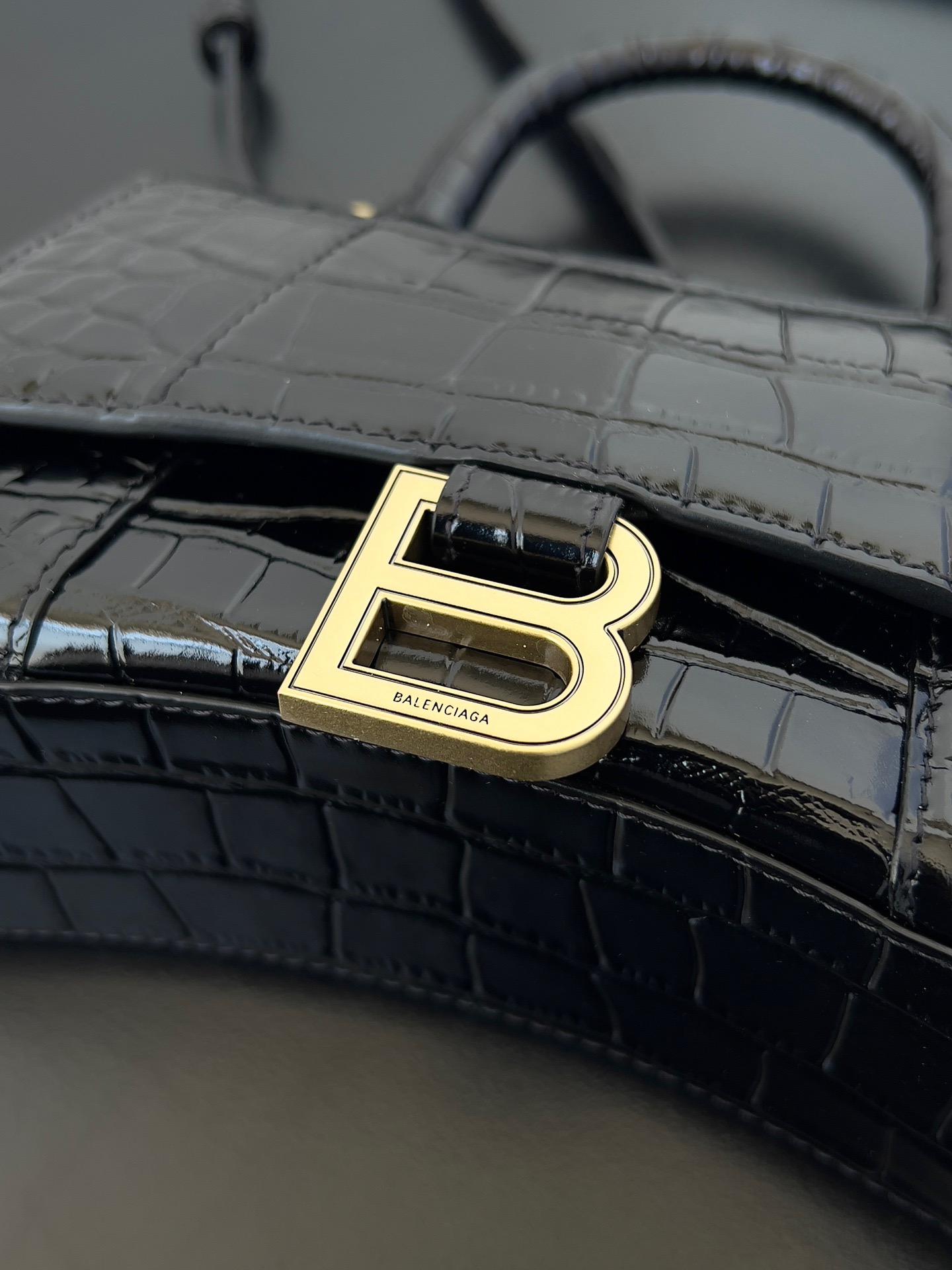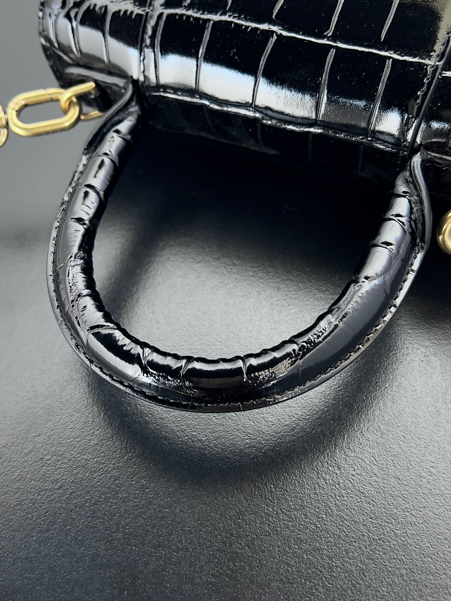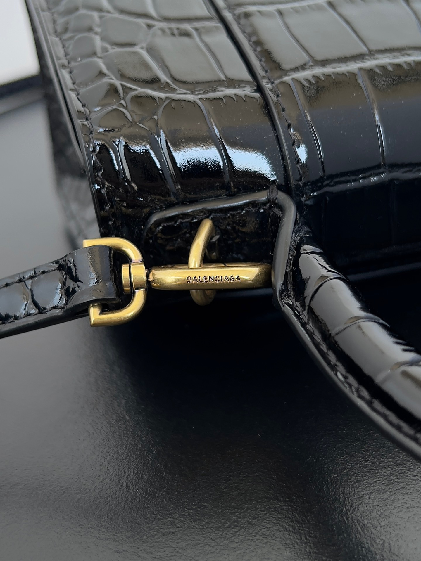 Hourglass iconic WOMEN'S HOURGLASS SMALL HANDBAG CROCODILE EMBOSSED IN BLACK - Bag