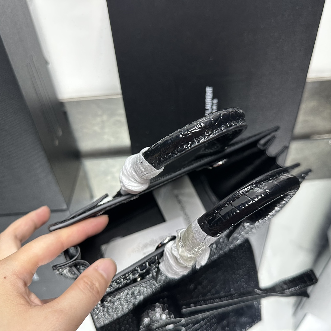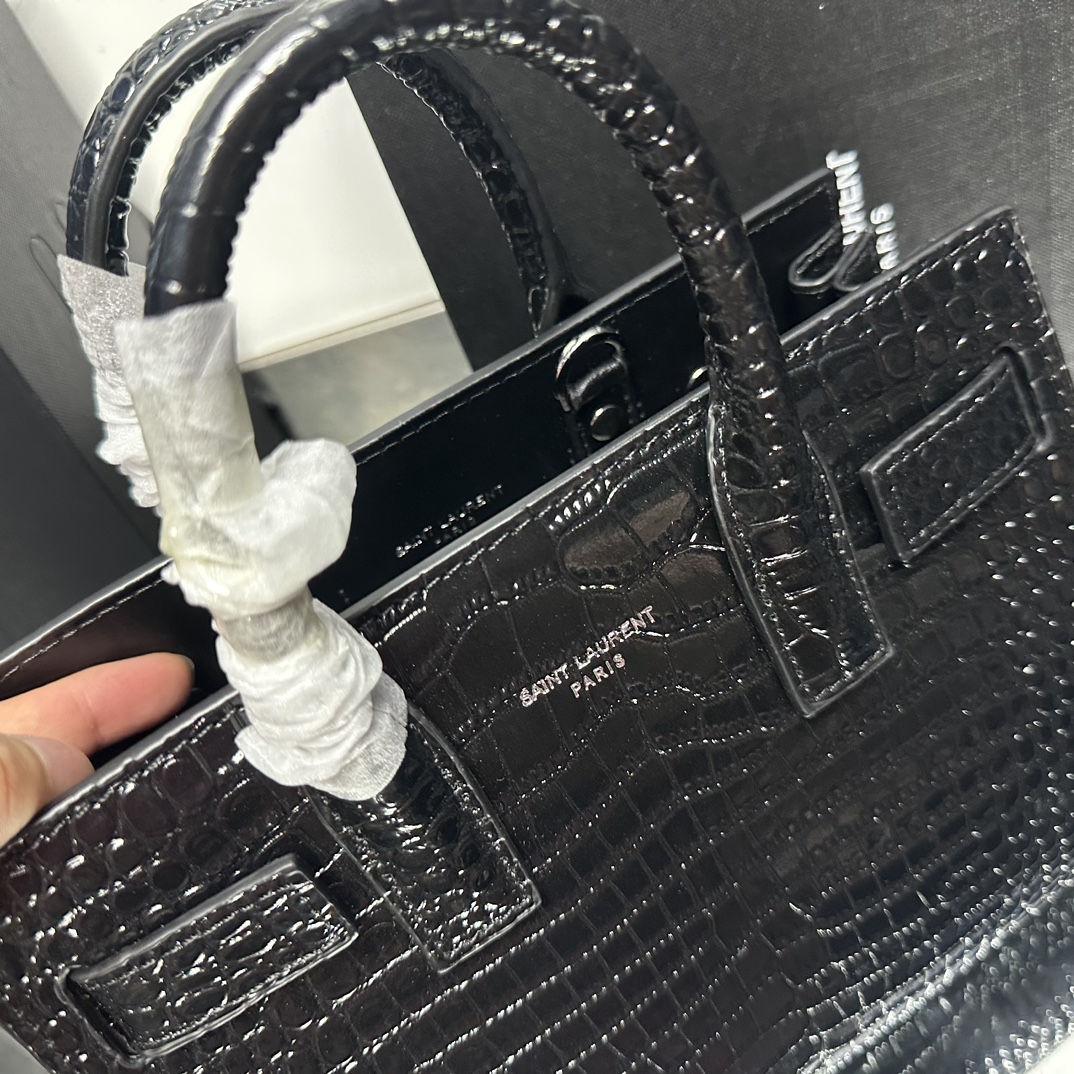 Lady Designer Black Croc Embossed Leather Nano Classic Sac De Jour Tote - Bag