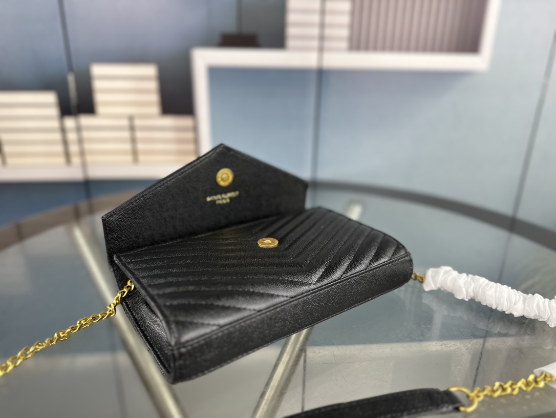 Lady Designer Fashion Cassandre Envelope- Black - Gold Metal