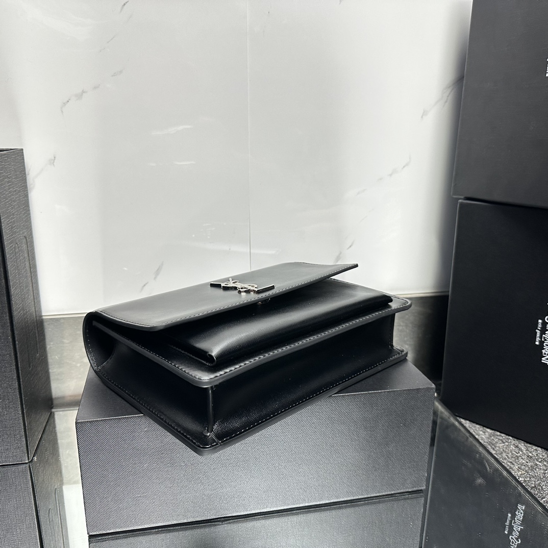 Lady Designer Fashion Sunset medium leather cross-body bag Black Sliver - Bag