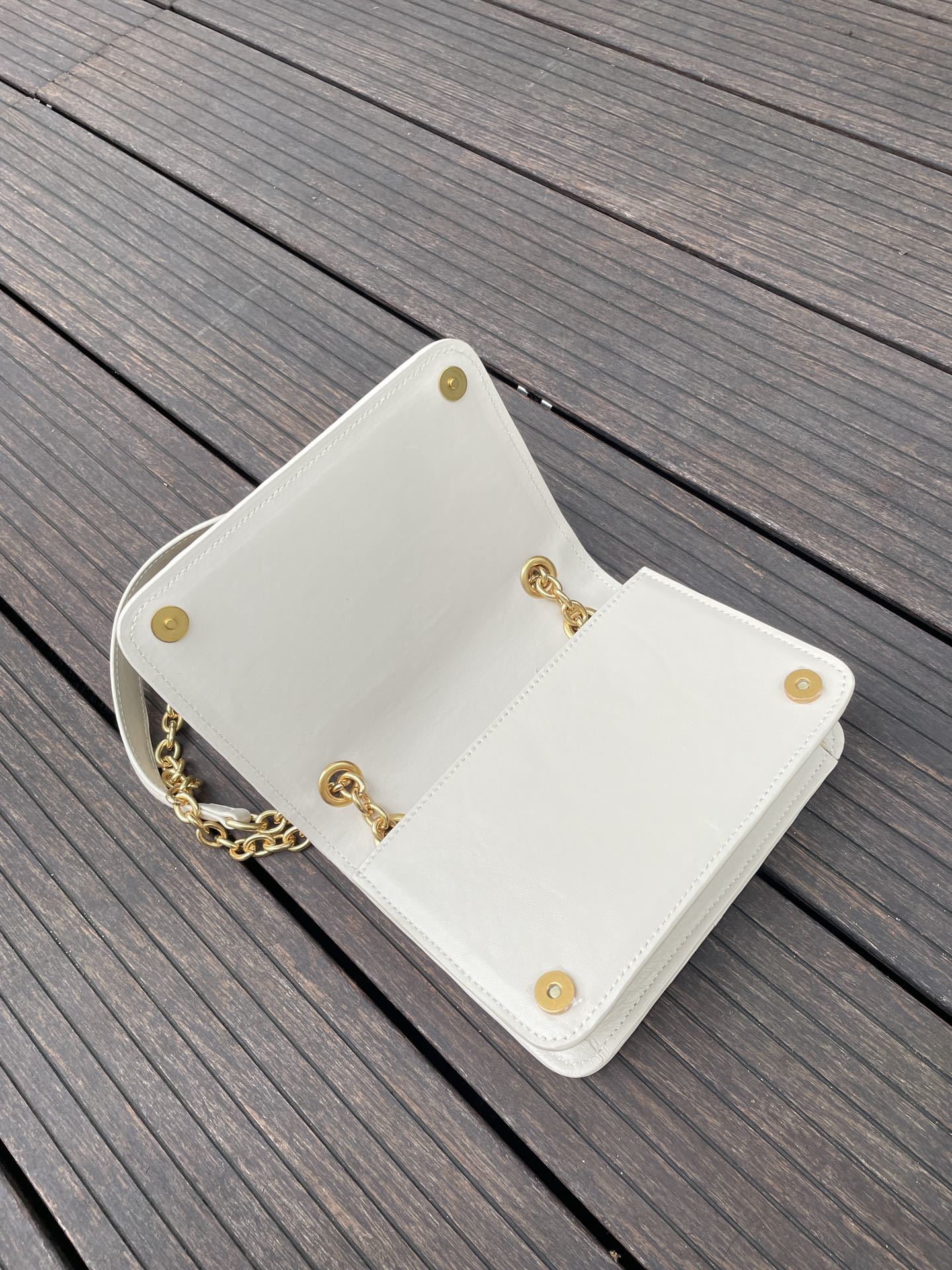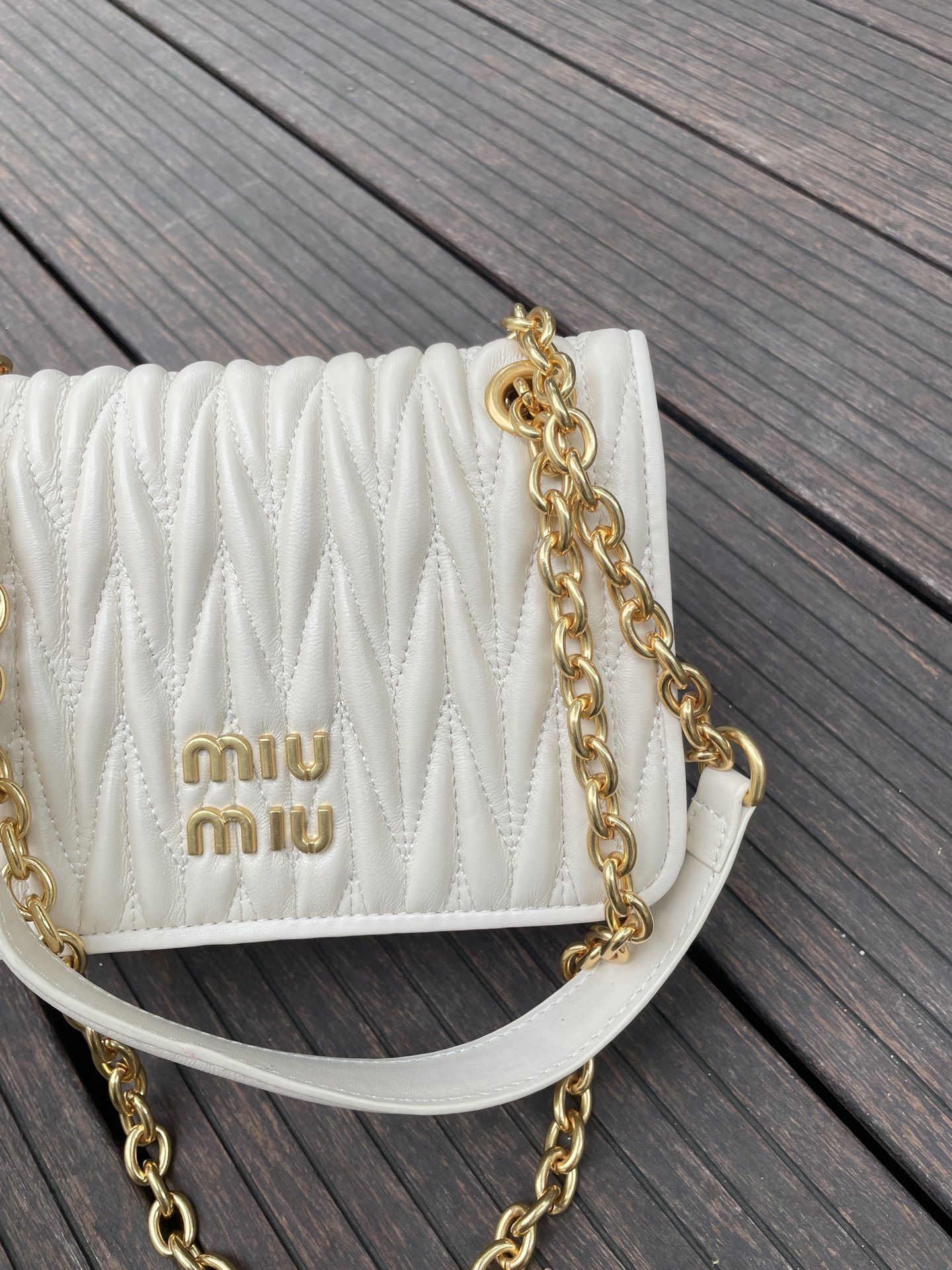 Matelassé pattern120cm sliding chain shoulder strap with shoulder padGold Metal/Stainless Steel HardwareMetal lettering logo on flapMagnetic flap closureFabric lining with pockets, removable mirror and card slots