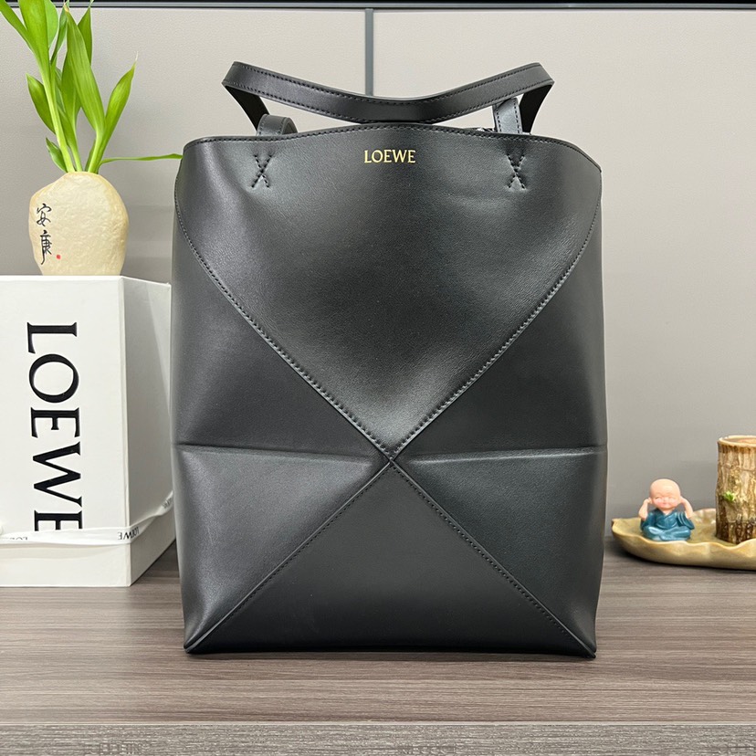 Puzzle iconic Puzzle Fold Tote in shiny calfskin Medium Black - Bag